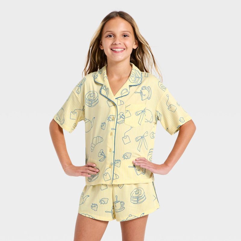 Girls' Breakfast Food Button-Down Pajama Set - art class™ Yellow L