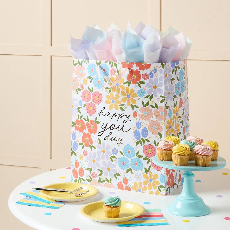 - XL gift bag with "Happy You Day" print and floral design