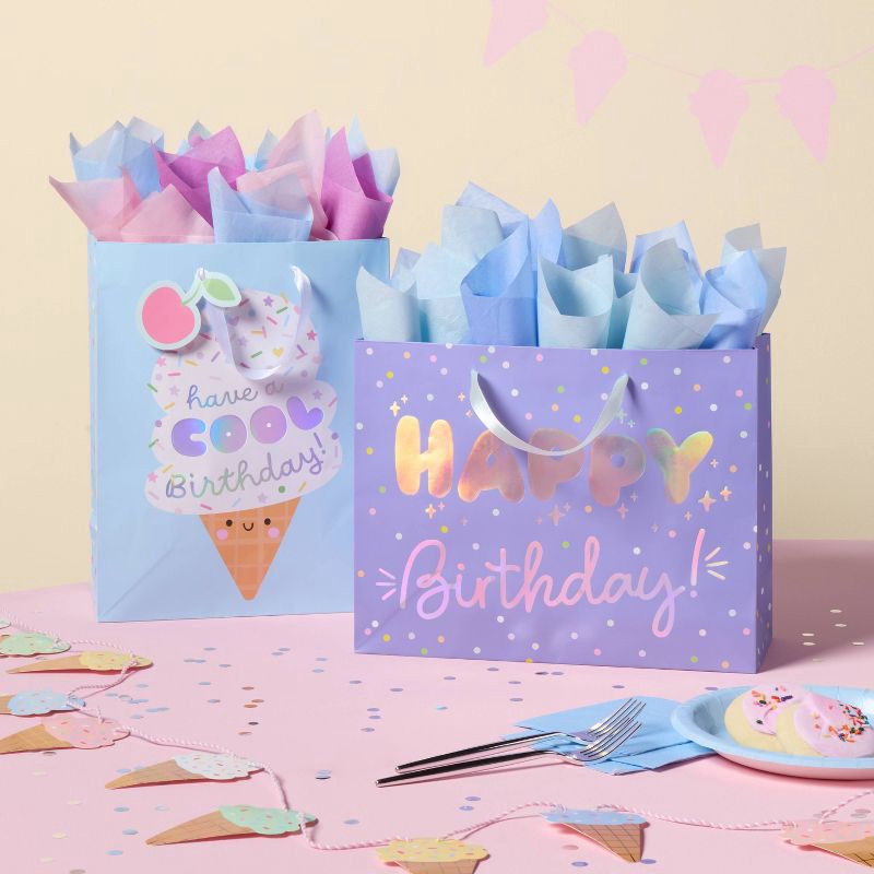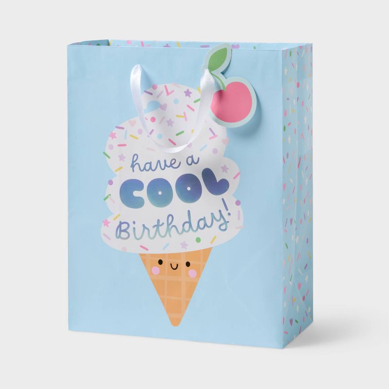Large Ice Cream Cone 'Have a Cool Birthday' Gift Bag with Holographic Foil and Tag - Spritz™
