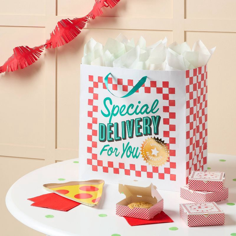 Large Square 'special Delivery For You' Pizza Box Birthday Gift Bag White/Red/Green - Spritz™
