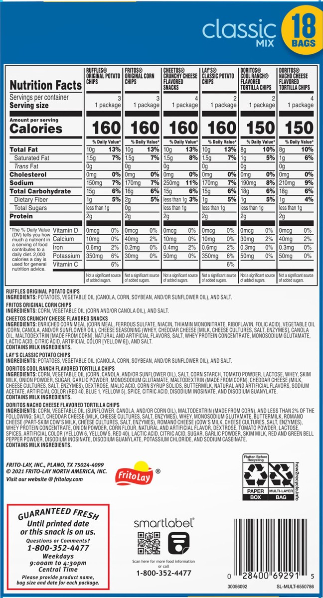 Frito Lay Classic Mix Variety Pack - 18 Count