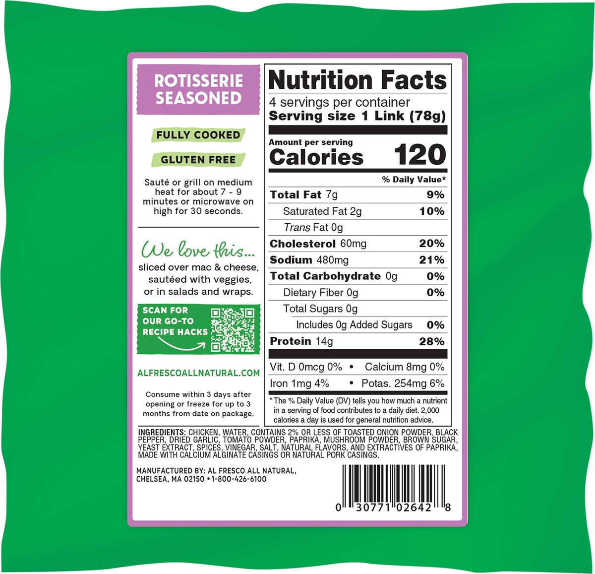 Al Fresco All Natural Rotisserie Seasoned Chicken Sausage, 11 oz