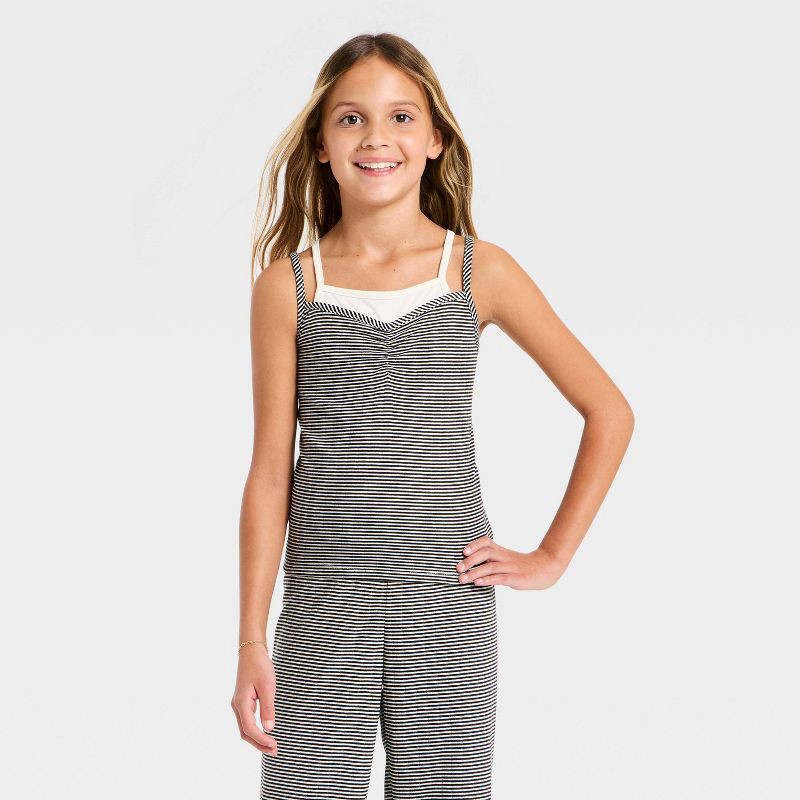 Girls' Jacquard Striped Tank Top and Pants Pajama Set - art class™ Black XL