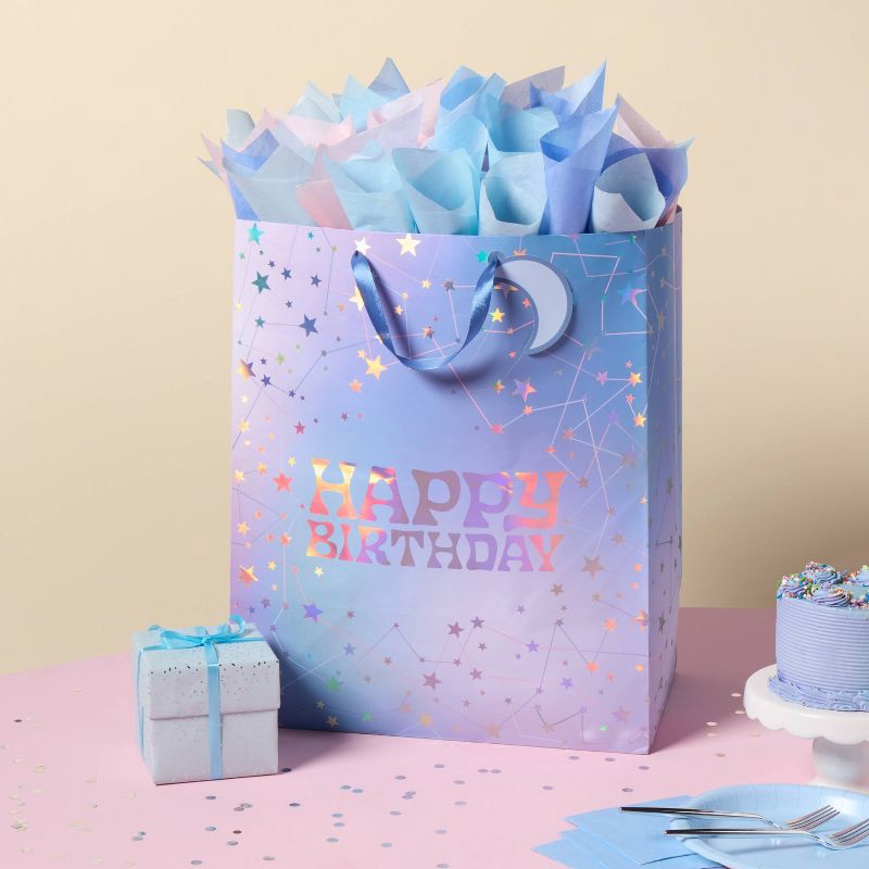 - XL astrology-themed gift bag with “Happy Birthday” print