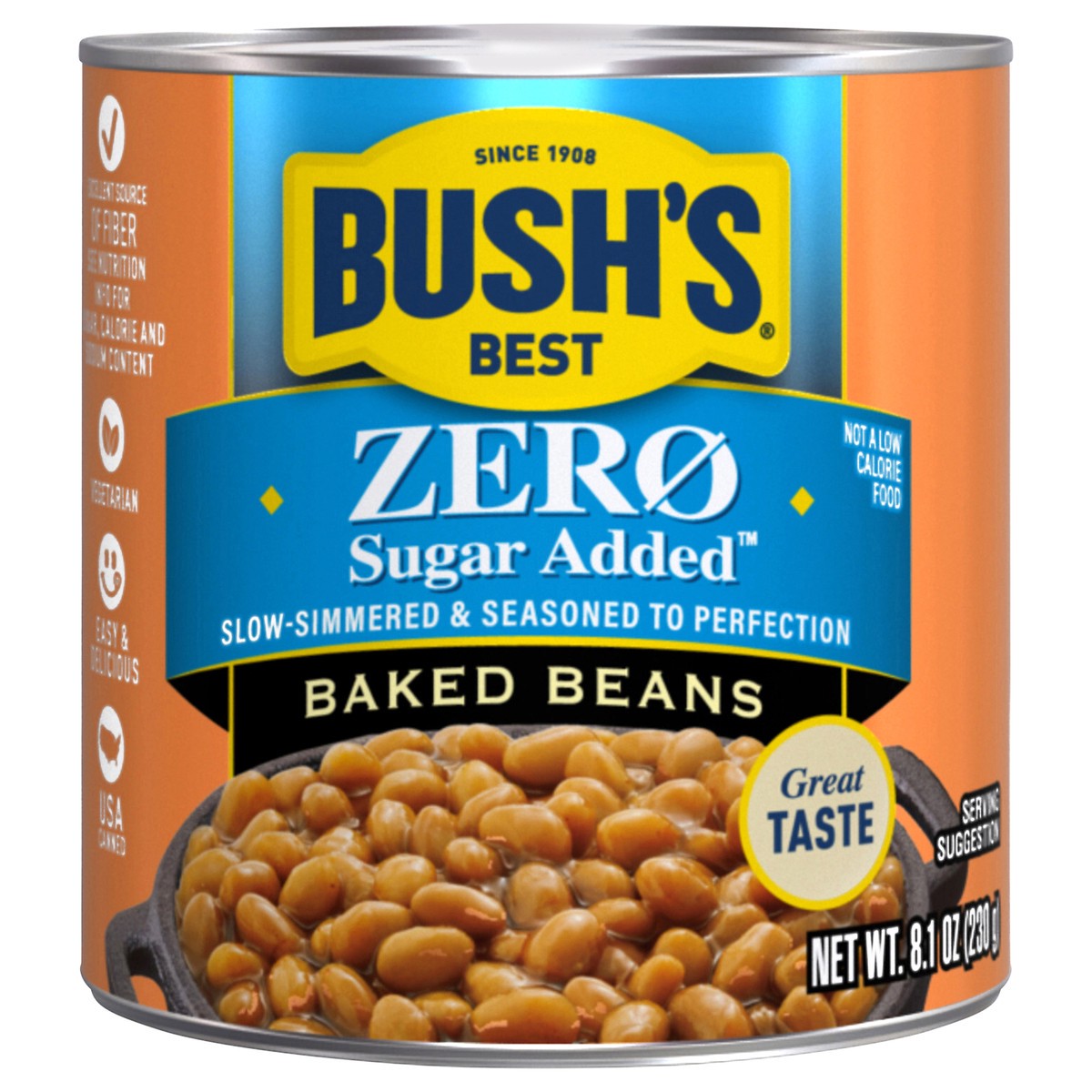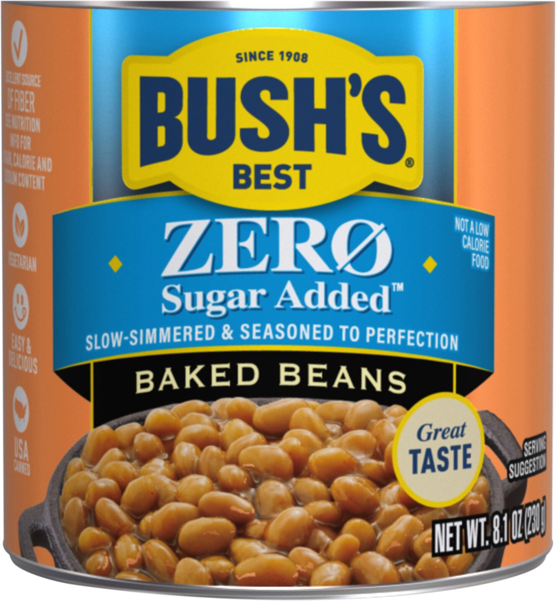 - Bush’s Zero Sugar Added Baked Beans are big on flavor but not on added sugar