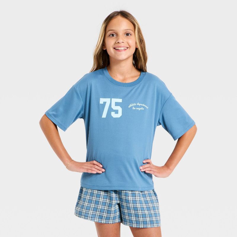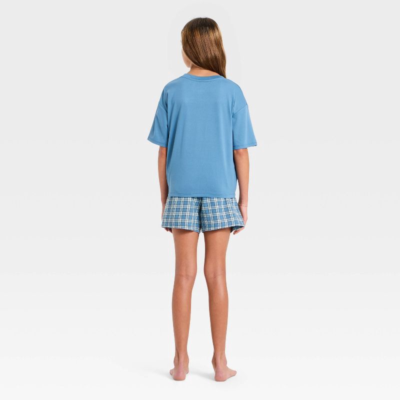 Girls' Athletic Graphic Boxer Shorts and T-Shirt Pajama Set - art class™ Blue S