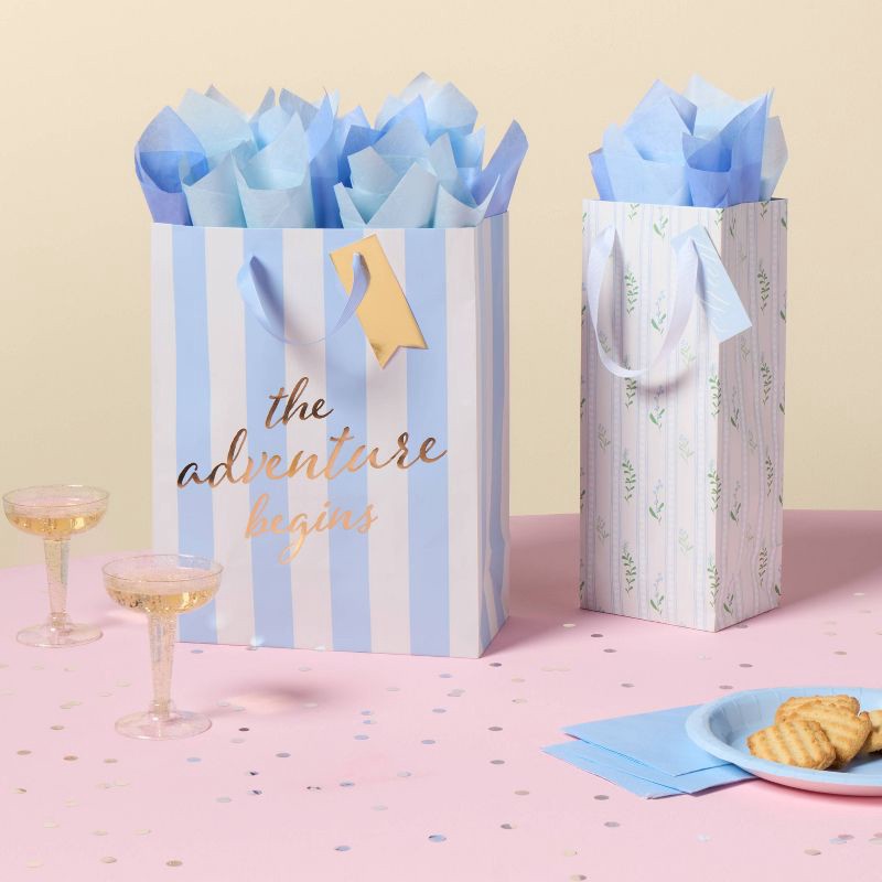 Striped Berries Wedding Spirit Gift Bag with Foil Tag Cream/Blue - Spritz™