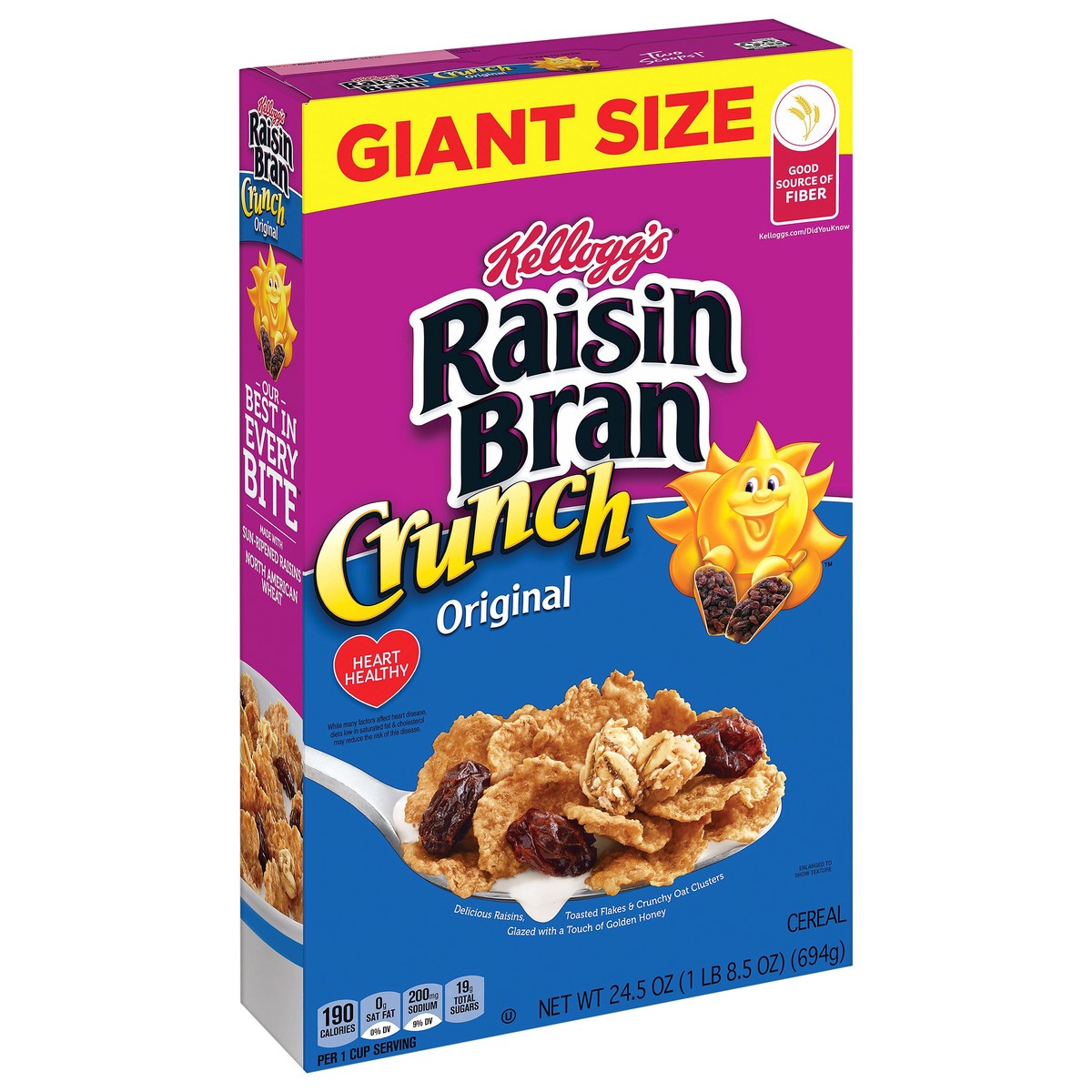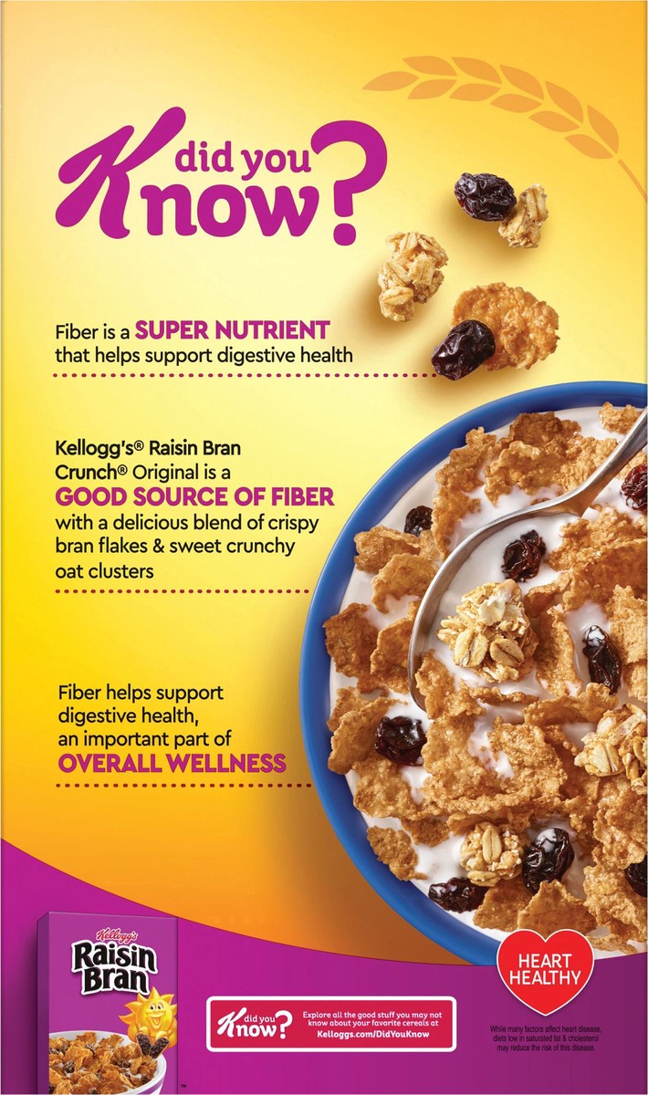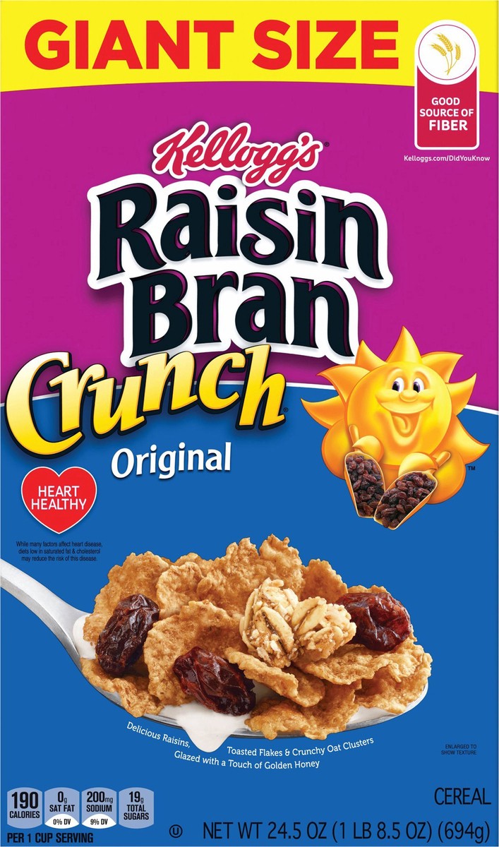 Have a bowl of get up and go with the delicious taste of Kellogg's Raisin Bran Crunch, a delicately crafted, wholesome breakfast cereal that helps bring energy to start your day. This satisfyingly cru…