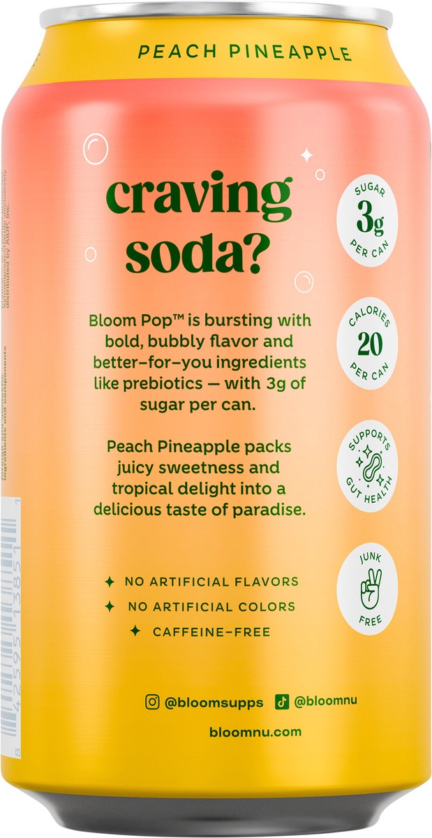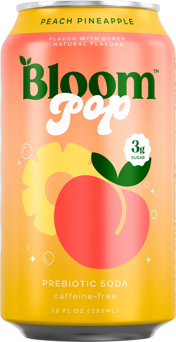 Bloom Pop Peach Pineapple Prebiotic Soda, 12 fl oz Can