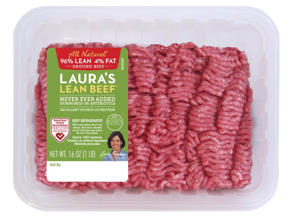 All-natural 96% Lean Ground Beef is certified Heart-Healthy by the American Heart Association® with less than 5 grams of fat per serving, providing a balance of taste and nutrition. Laura's 96% Lean G…