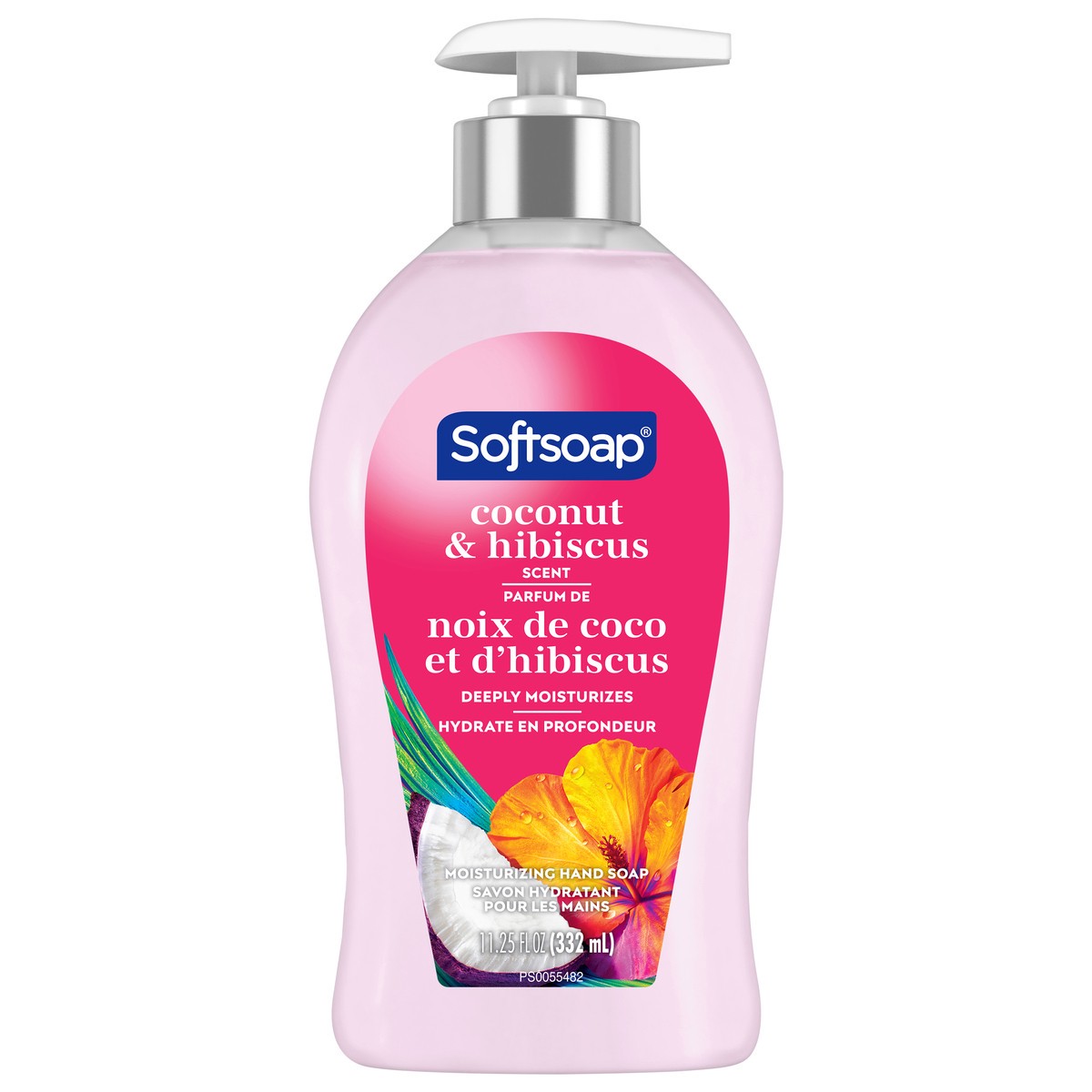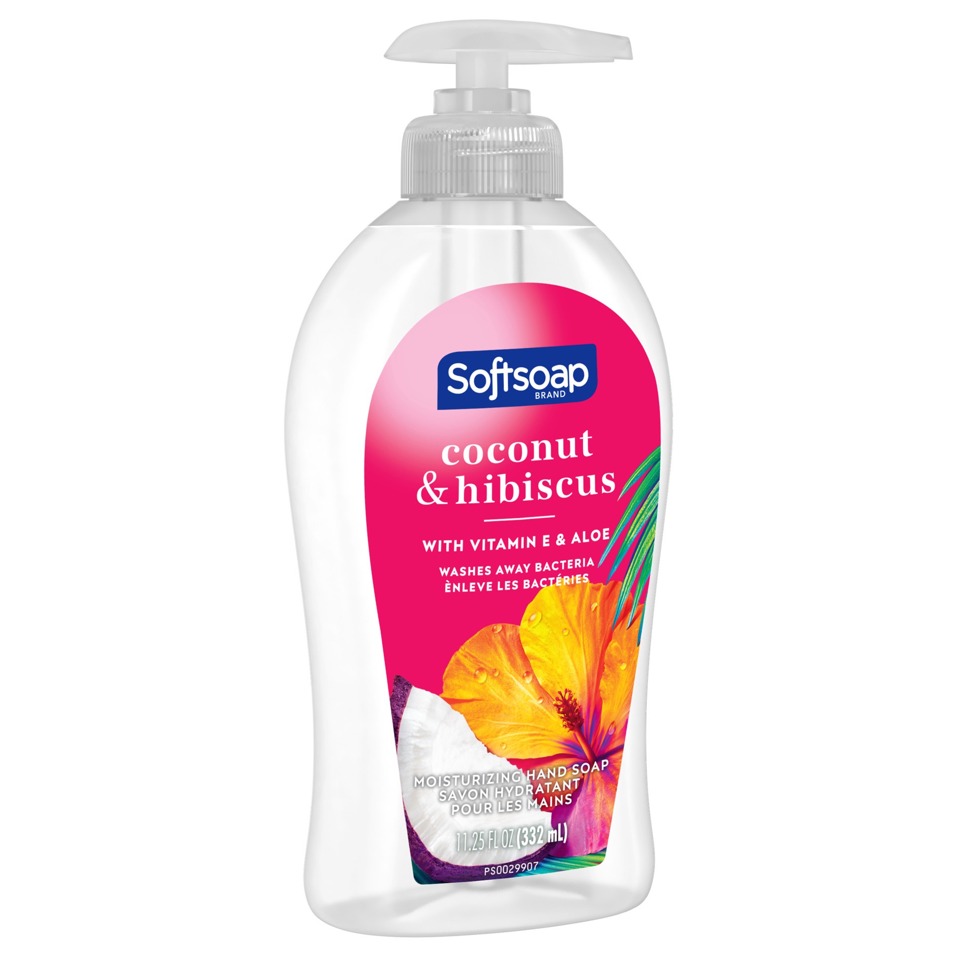 - Softsoap’s Coconut and Hibiscus Liquid Hand Soap perfectly complements the elegance of your bathroom or kitchen sink