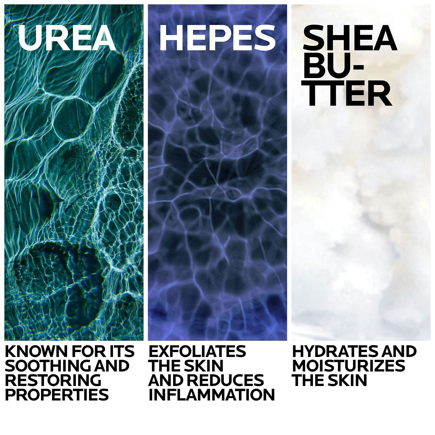 Aqua/Water/Eau; Urea; Glycerin; Butyrospermum Parkii Butter/Shea Butter; Brassica Campestris Seed Oil/Rapeseed Seed Oil; Dicaprylyl Carbonate; Isopropyl Palmitate; Pentylene Glycol; Glycine; Cetearyl …