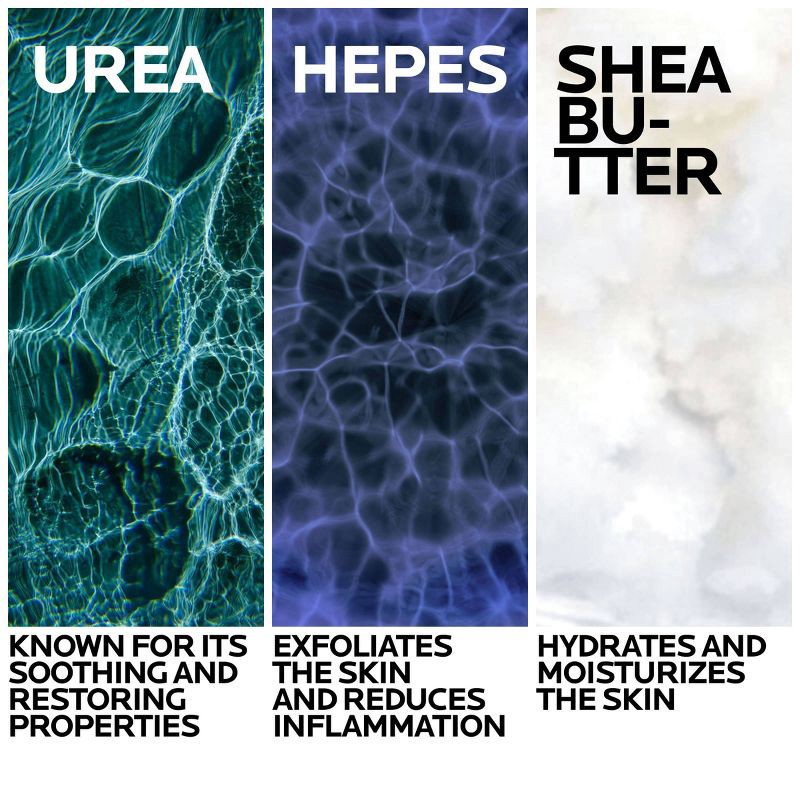 Aqua/Water/Eau; Urea; Glycerin; Butyrospermum Parkii Butter/Shea Butter; Brassica Campestris Seed Oil/Rapeseed Seed Oil; Dicaprylyl Carbonate; Isopropyl Palmitate; Pentylene Glycol; Glycine; Cetearyl …