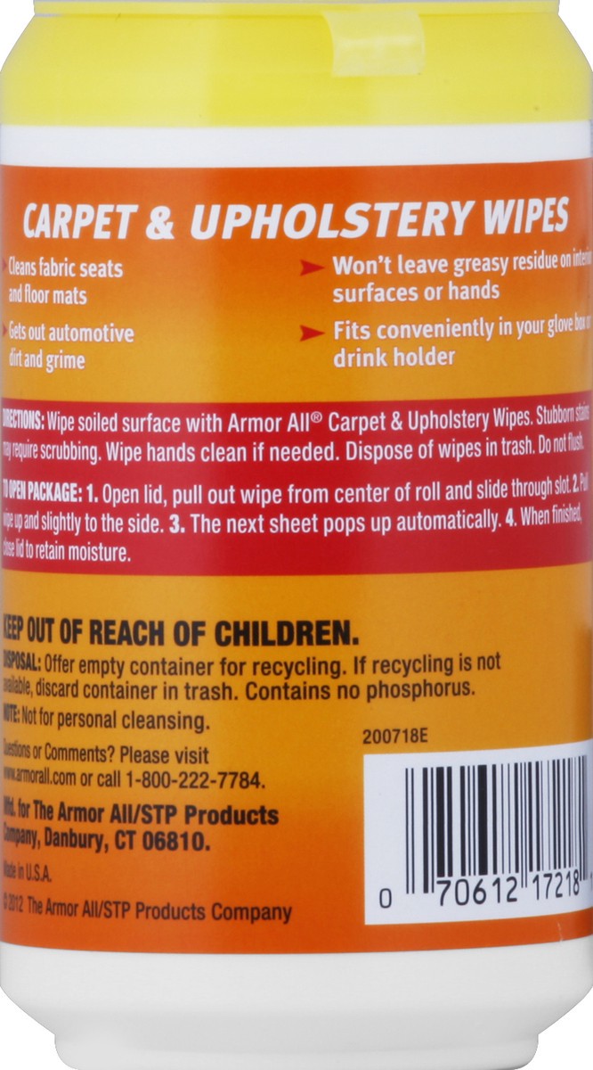 6 in x 7 in. Durable wipe for cleaning spots and stains on fabric, carpet and floor mats. Cleans fabric seats and floor mats. Gets out automotive dirt and grime. Won't leave greasy residue on interior…