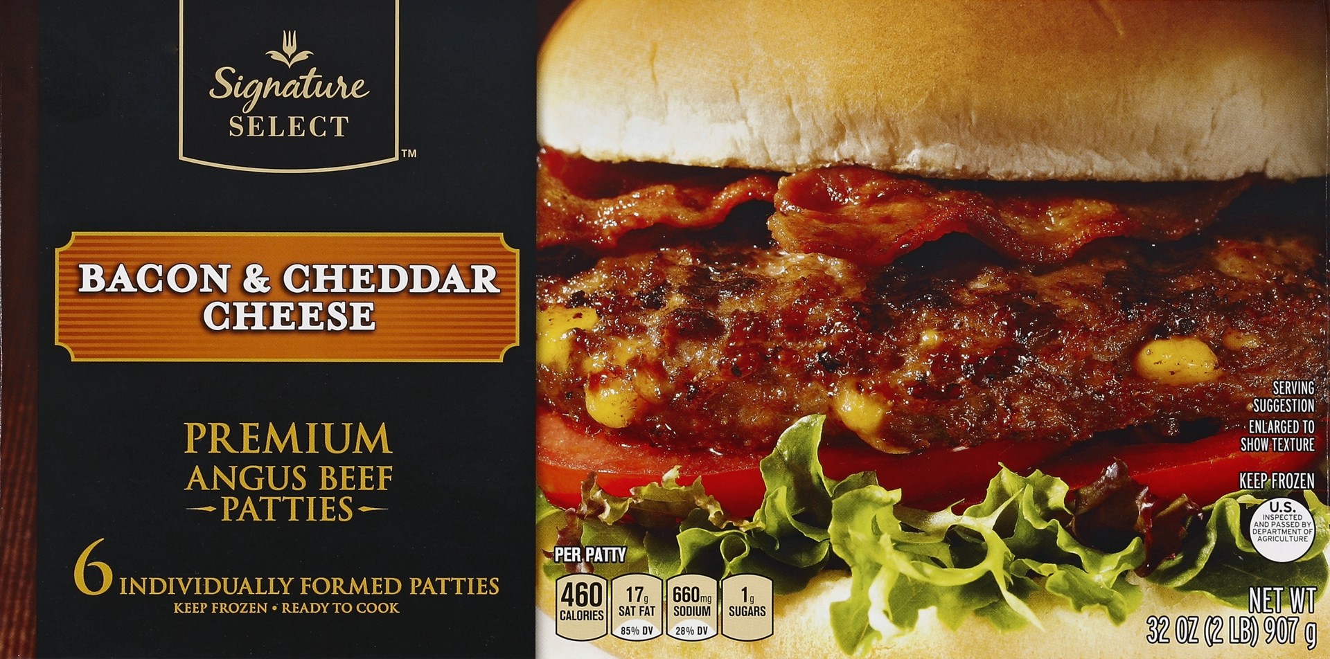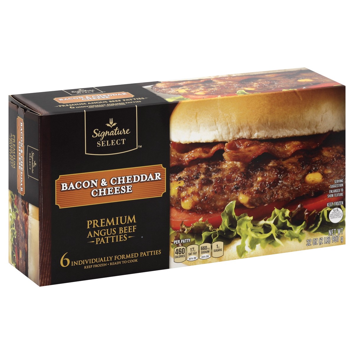 Signature Select Bacon And Cheddar Cheese Premium Angus Beef Hamburger Patties - 32 Oz