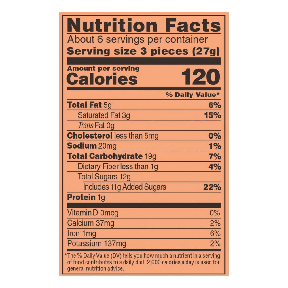Glucose Syrup (from Wheat or Corn), Semisweet Chocolate (Sugar, Chocolate Liquor, Cocoa Butter, Butterfat, Soy Lecithin Emulsifier, Vanilla Powder), Sugar, Whey, Palm Oil, Condensed Skim Milk, Cocoa P…