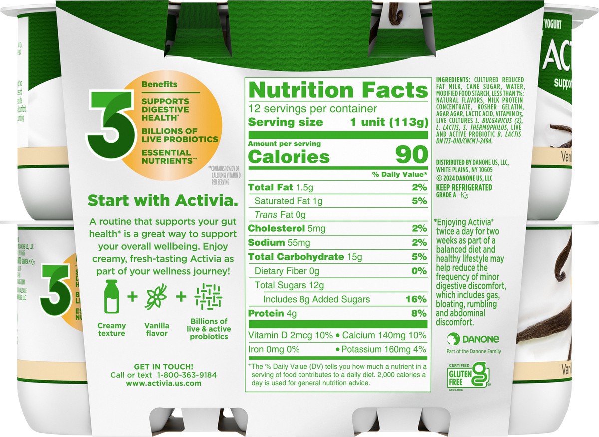 Activia Low Fat Probiotic Vanilla Yogurt - 12-4 Oz