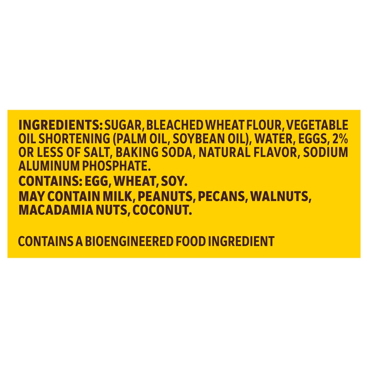 Sugar, Bleached Wheat Flour, Vegetable Oil Shortening (Palm Oil, Soybean Oil), Water, Eggs, 2% or Less of Salt, Baking Soda, Natural Flavor, Sodium Aluminum Phosphate.
