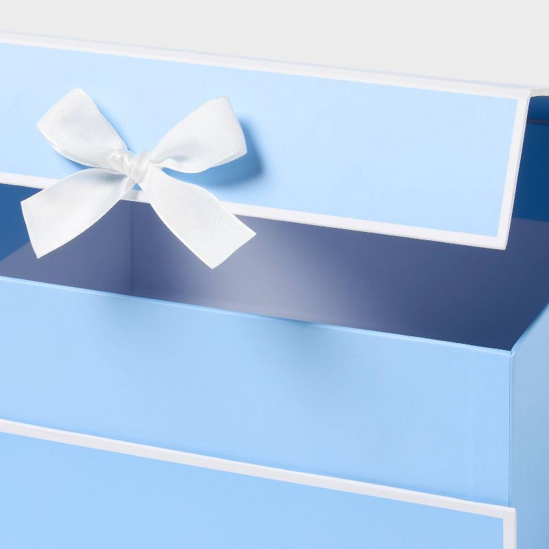 Finish gifts with soft polished charm using this square gift box from Spritz™. The light blue color and simple bow create a calm celebratory look that feels thoughtful and ready to give. Sized to hold…