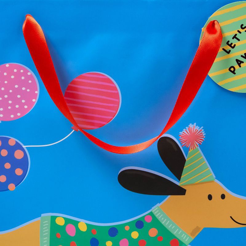Make birthdays extra playful with this large party dog gift bag from Spritz™. Featuring a cheerful dog-in-a-party-hat design on a bright blue background, it brings instant smiles. The spacious size fi…