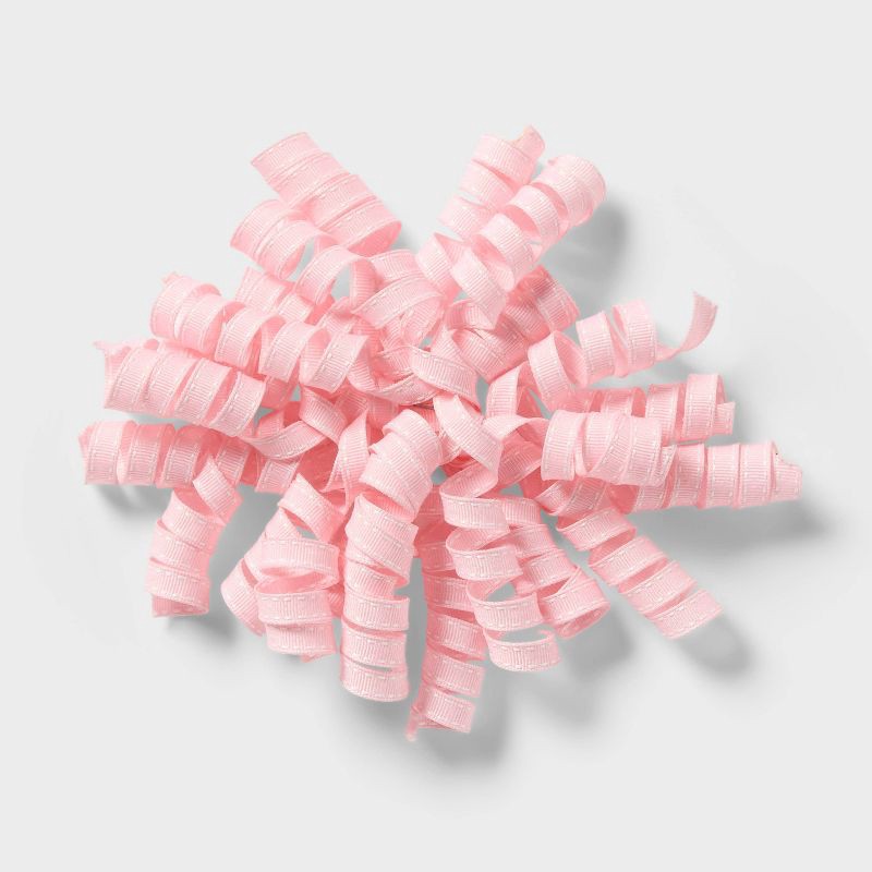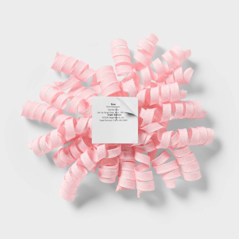 7" Fabric Stitch Curly Gift Bow Light Pink/White - Spritz™