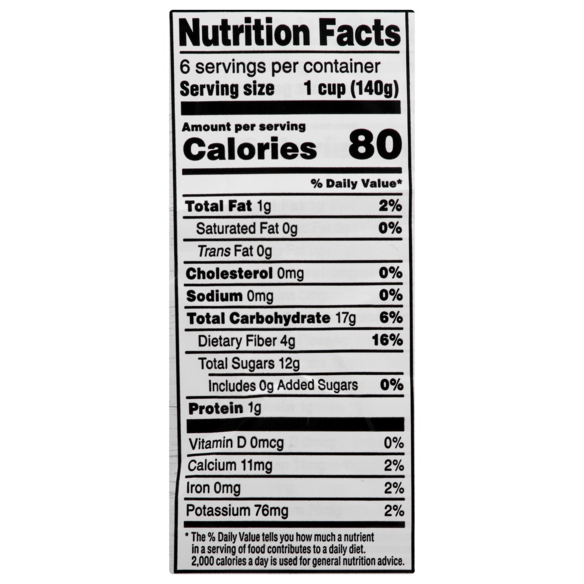 Per 1 Cup Serving: 80 calories; 0 g sat fat (0% DV); 0 mg sodium (0% DV); 12 g total sugars. USDA Organic. Certified Organic by: California Certified Organic Farmers. Certified Organic CCOF. Organical…