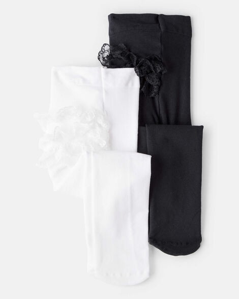 Carter's Baby Girl 2-Pack Tights - Black/White - 6-12 Months