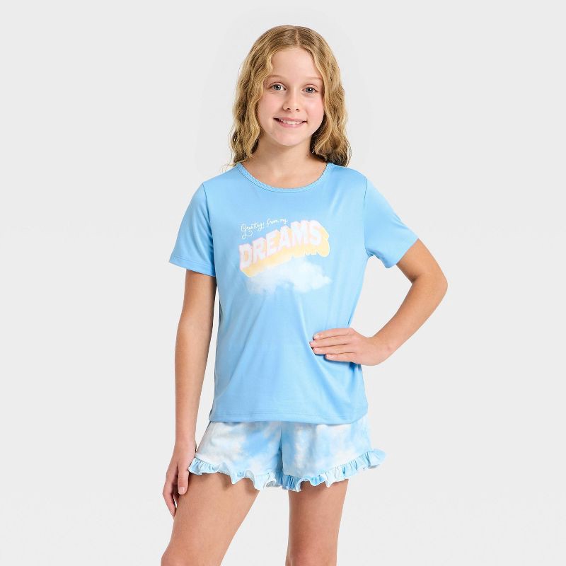 Girls' 3pc Dreamer Short Sleeve Pajama Set - Cat & Jack™ Blue M