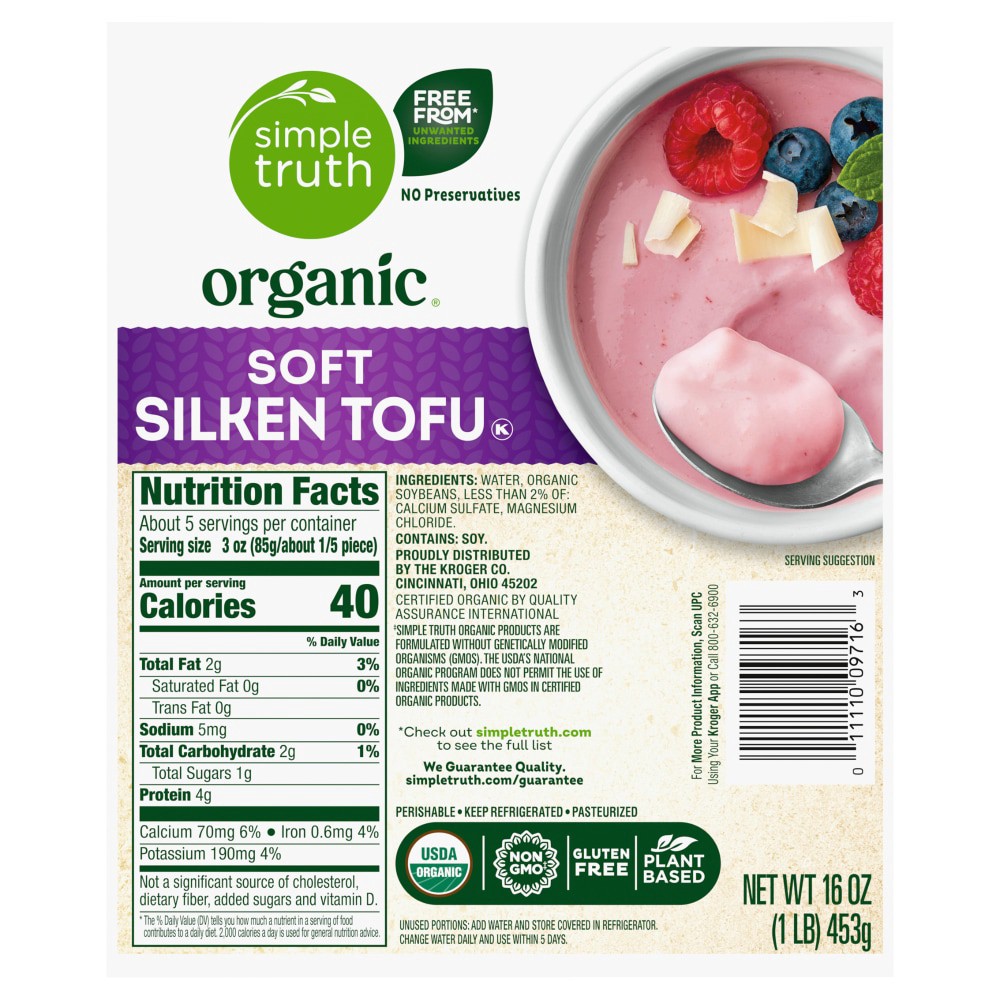 Simple Truth Organic® Soft Silken Tofu is a smooth, flavorful, USDA organic choice for your kitchen. Produced from organic soybeans, it delivers deliciousness with no preservatives. Plus, it is a non-…