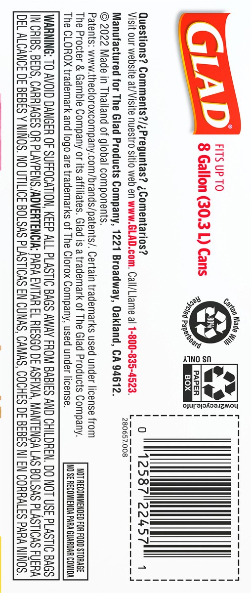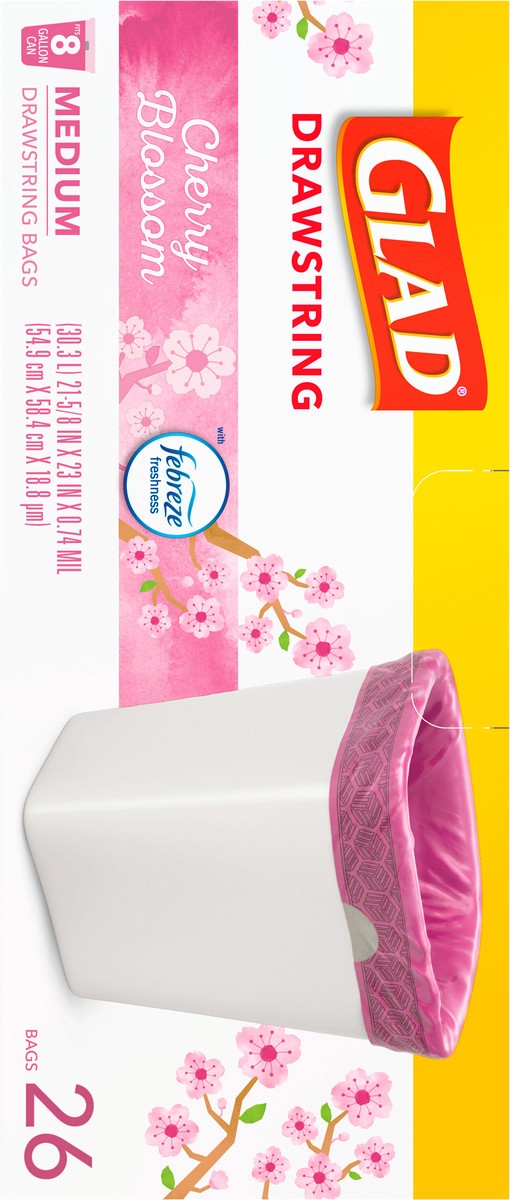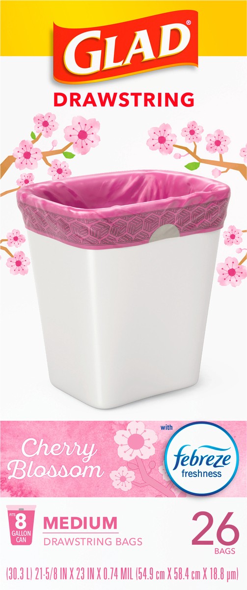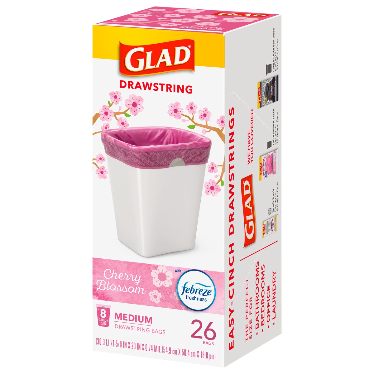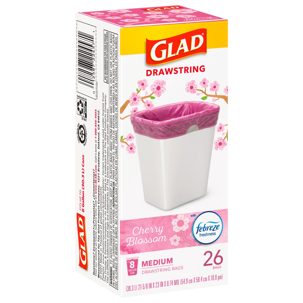 Glad Drawstring Medium Scented Trash Bags provide strength plus odor control using the steady release of Febreze Freshness in Cherry Blossom scent. These 8 gallon trash bags help you achieve long-last…