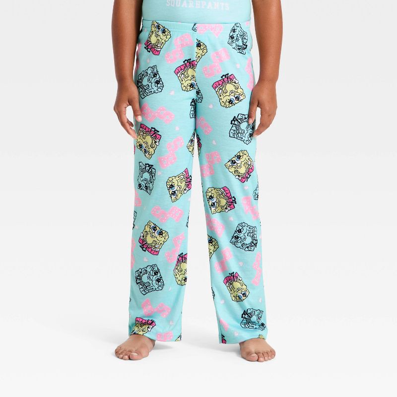Girls' 2pc SpongeBob SquarePants T-Shirt and Pants Pajama Set - Turqouise Blue S