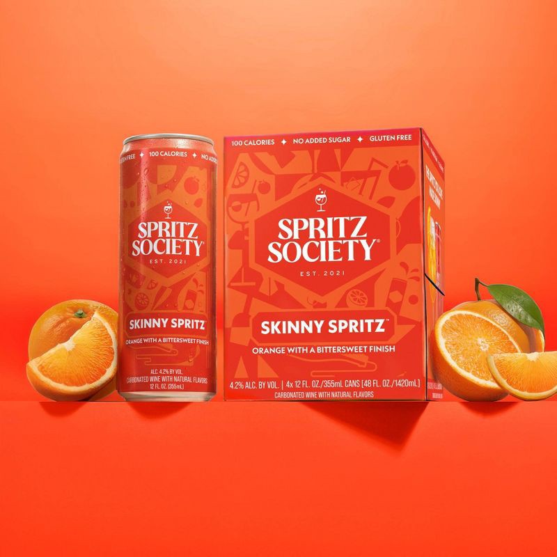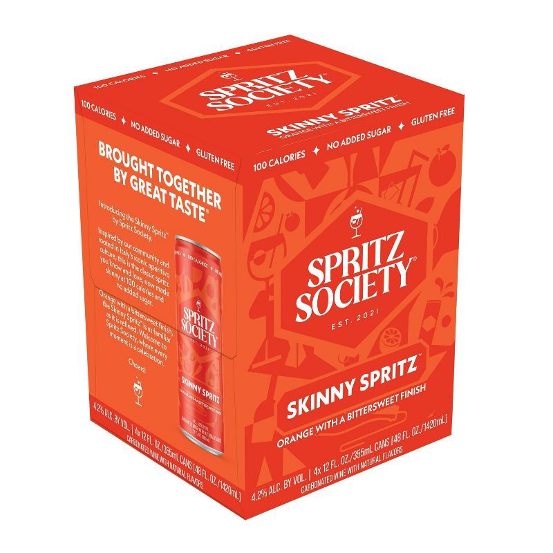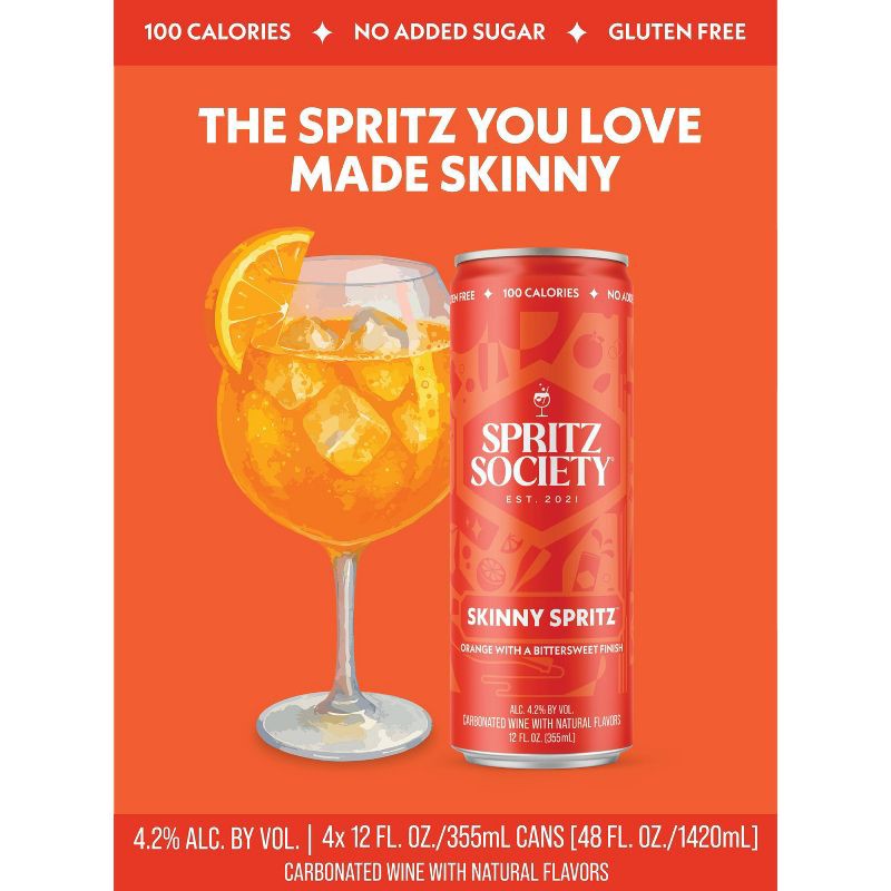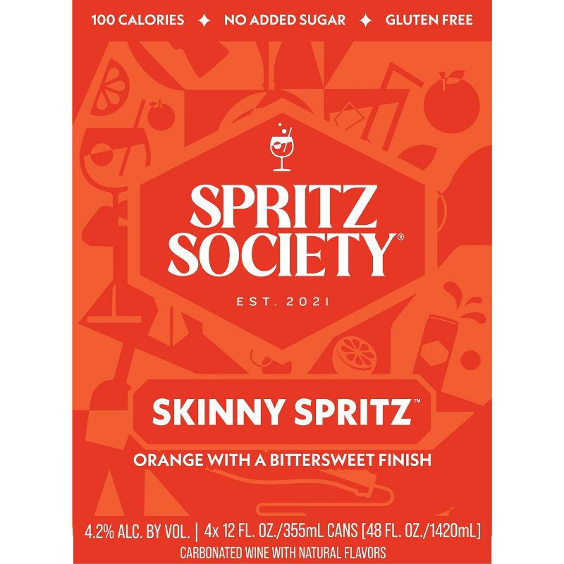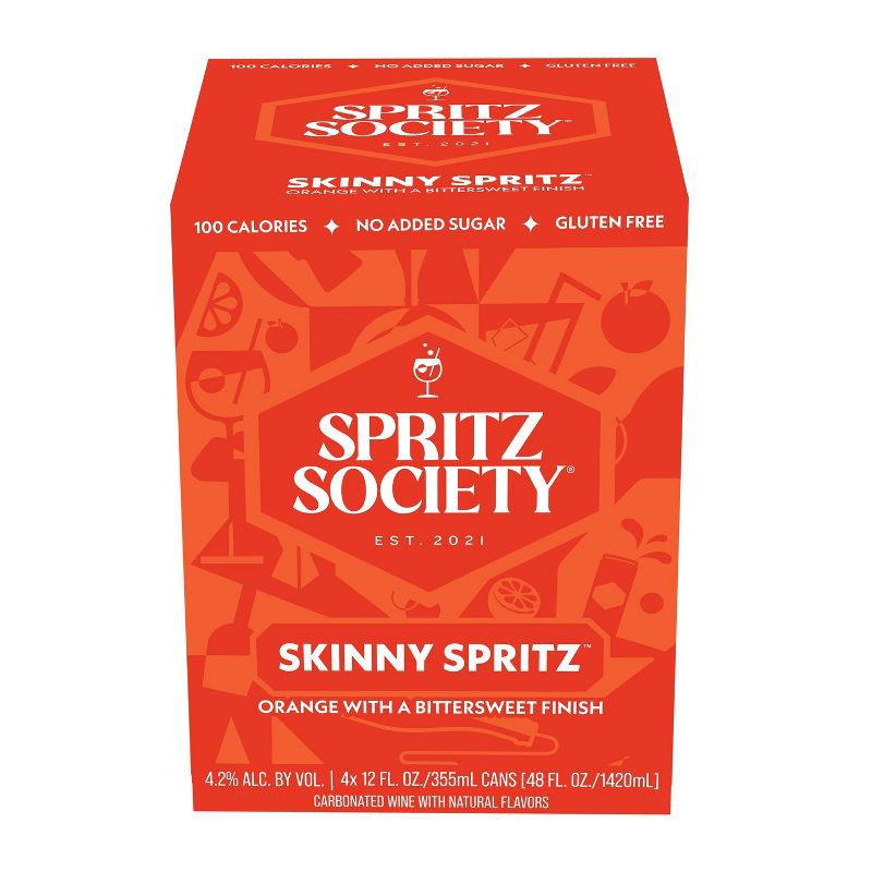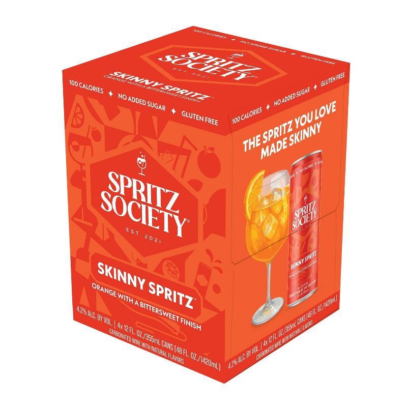- Pack of four (4) Spritz Society Skinny Spritz 355ml cans