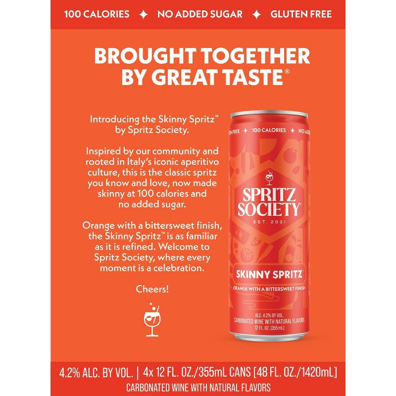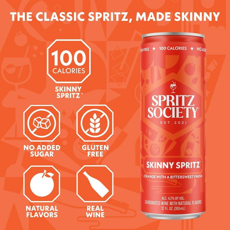 Introducing the Skinny Spritz by Spritz Society. Inspired by our community and rooted in Italy's iconic aperitivo culture, this is the classic spritz you know and love, now made skinny at 100 calories…