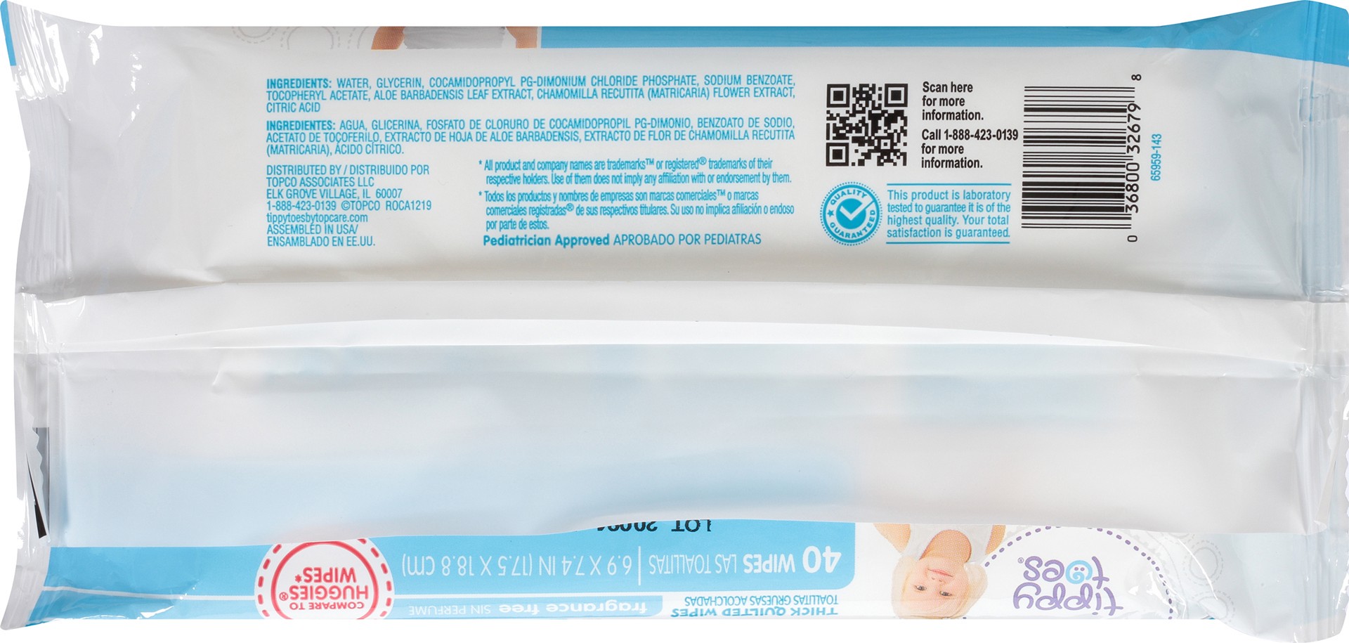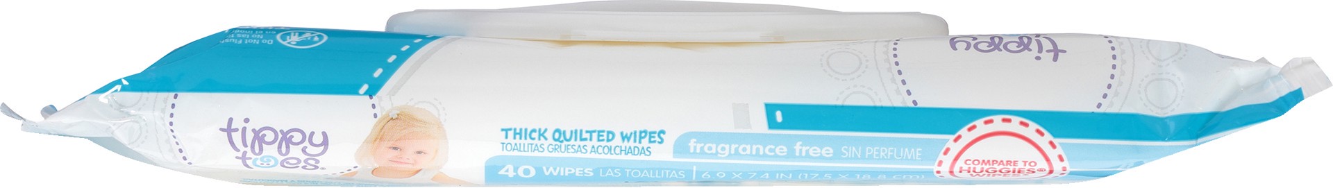 Tippy Toes Thick & Quilted Fragrance Free Wipes 40 Each