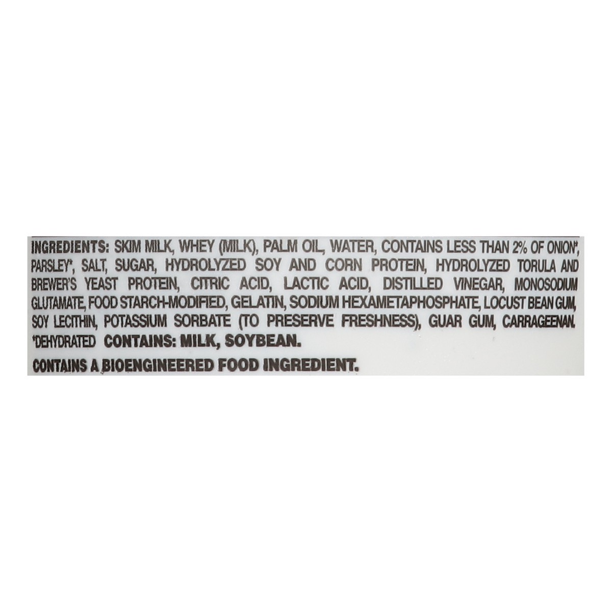 Skim Milk, Whey (Milk), Palm Oil, Water, Contains Less than 2% of Onion (Dehydrated), Parsley, Salt, Sugar, Hydrolyzed Soy and Corn Protein, Hydrolyzed Torula and Brewer''s Yeast Protein, Citric Acid,…