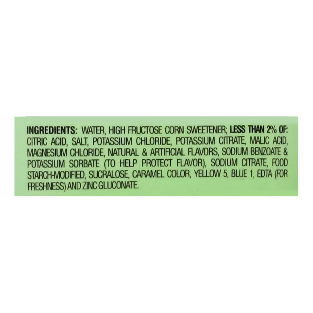 Water, High Fructose Corn Sweetener; Less than 2% of: Citric Acid, Salt, Potassium Chloride, Potassium Citrate, Malic Acid, Magnesium Chloride, Natural & Artificial Flavors, Sodium Benzoate & Potassiu…