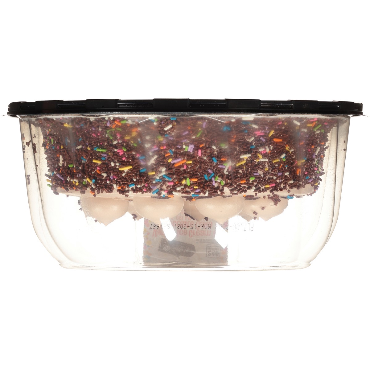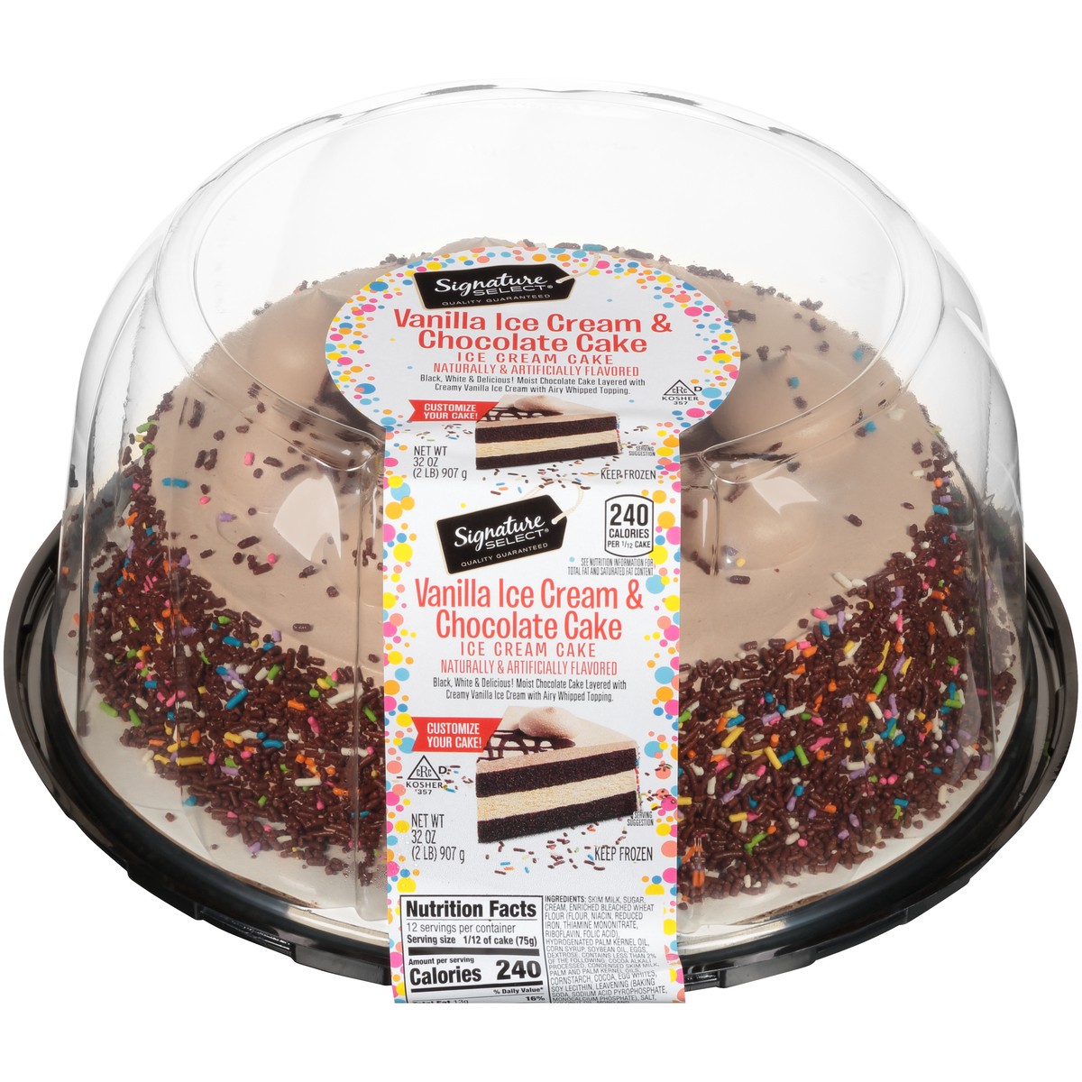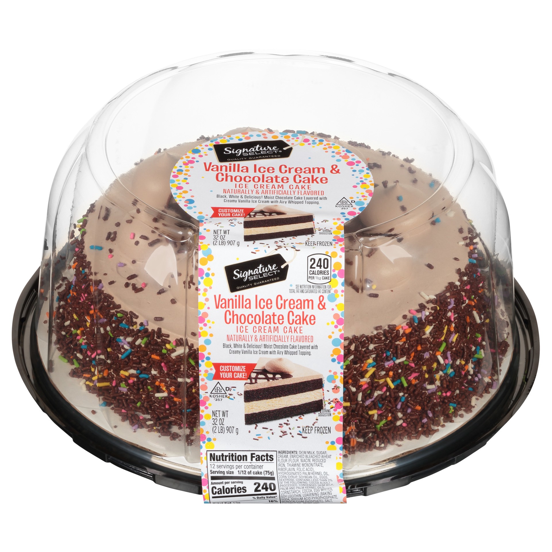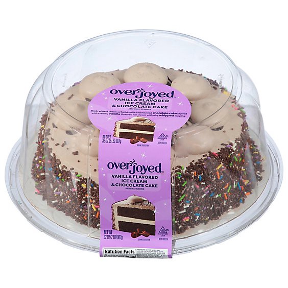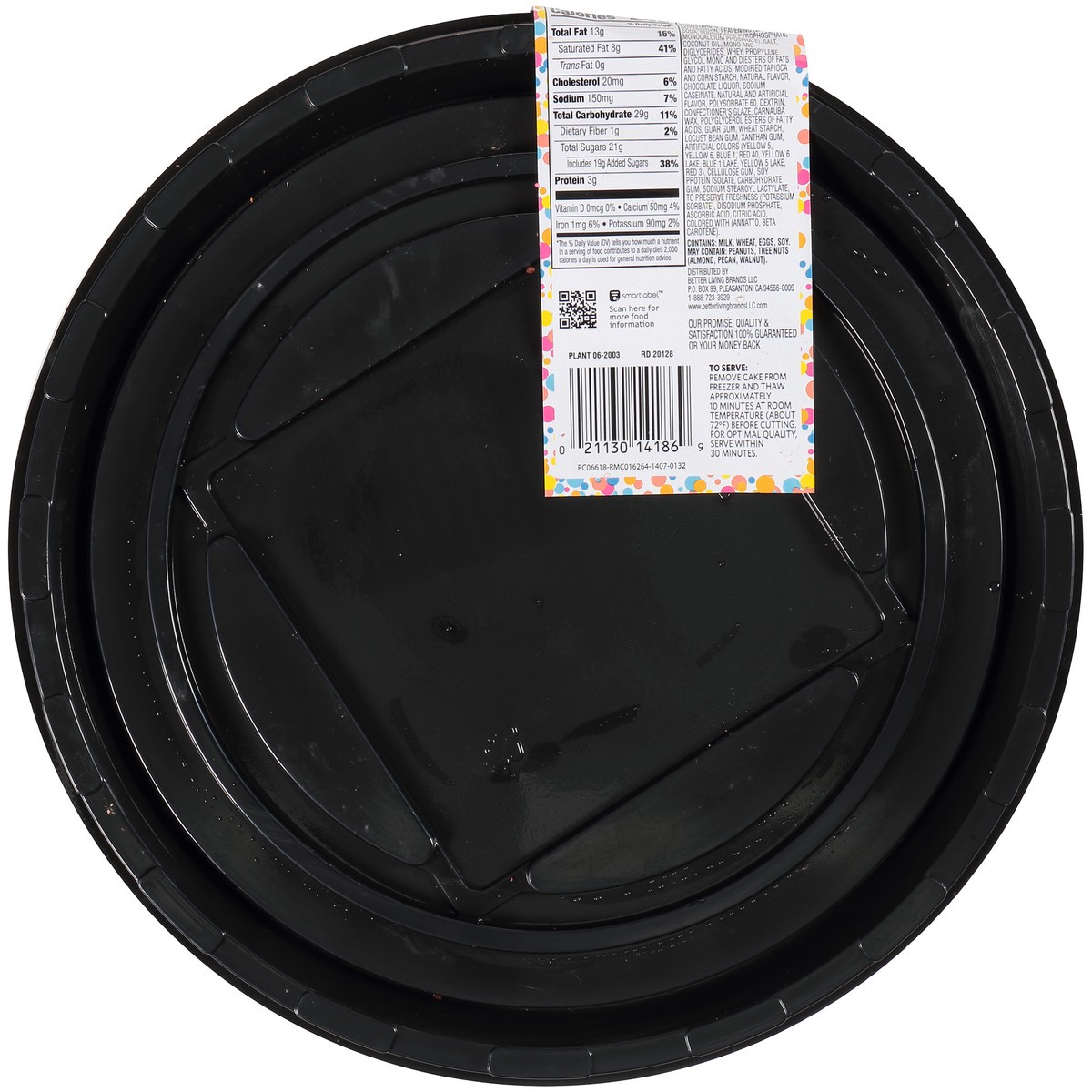 Black, white & delicious! Moist chocolate cake layered with creamy vanilla ice cream with airy whipped topping. Naturally & artificially flavored. 240 calories per 1/12 cake. See nutrition information…