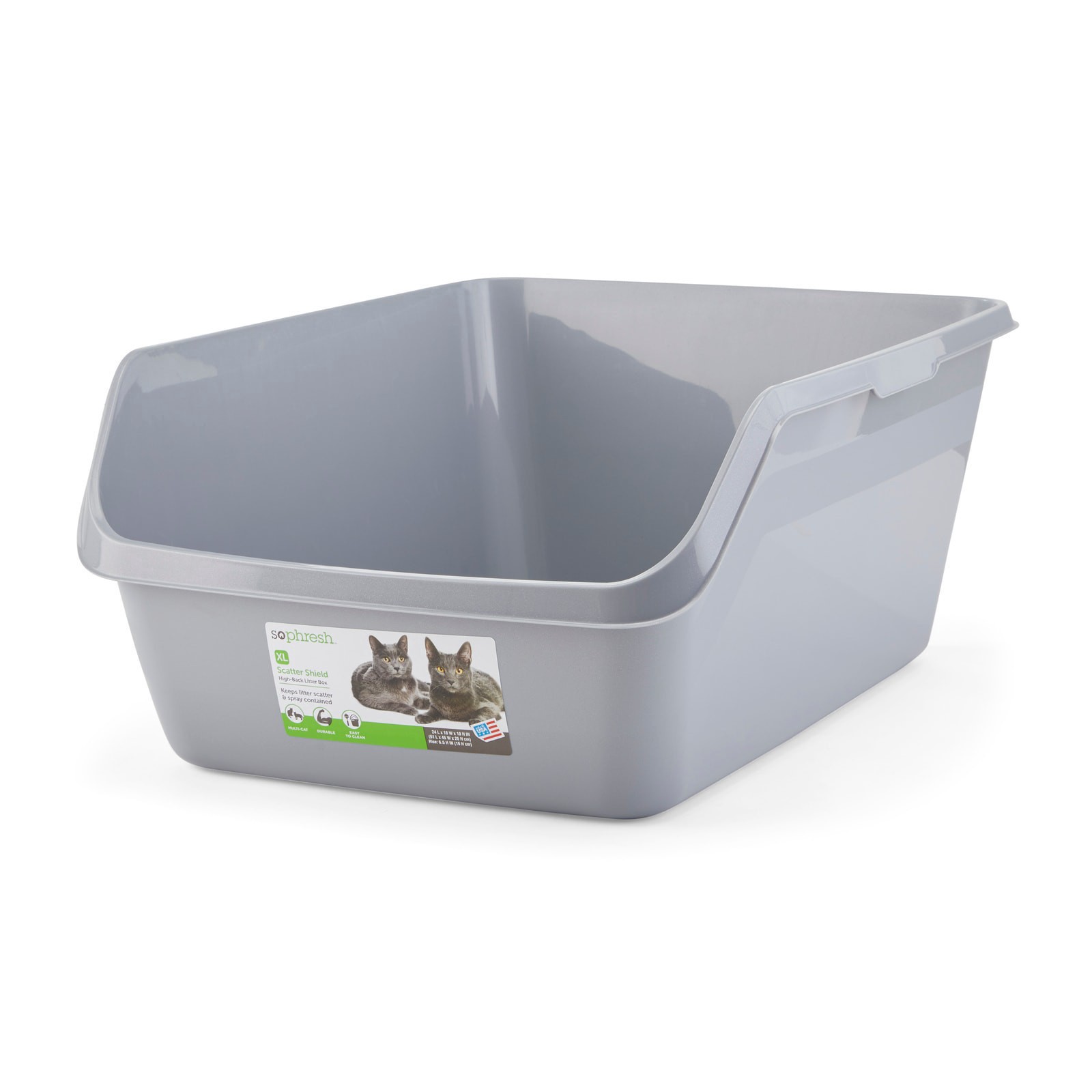 So Phresh Scatter Shield High-Back Litter Box in Gray