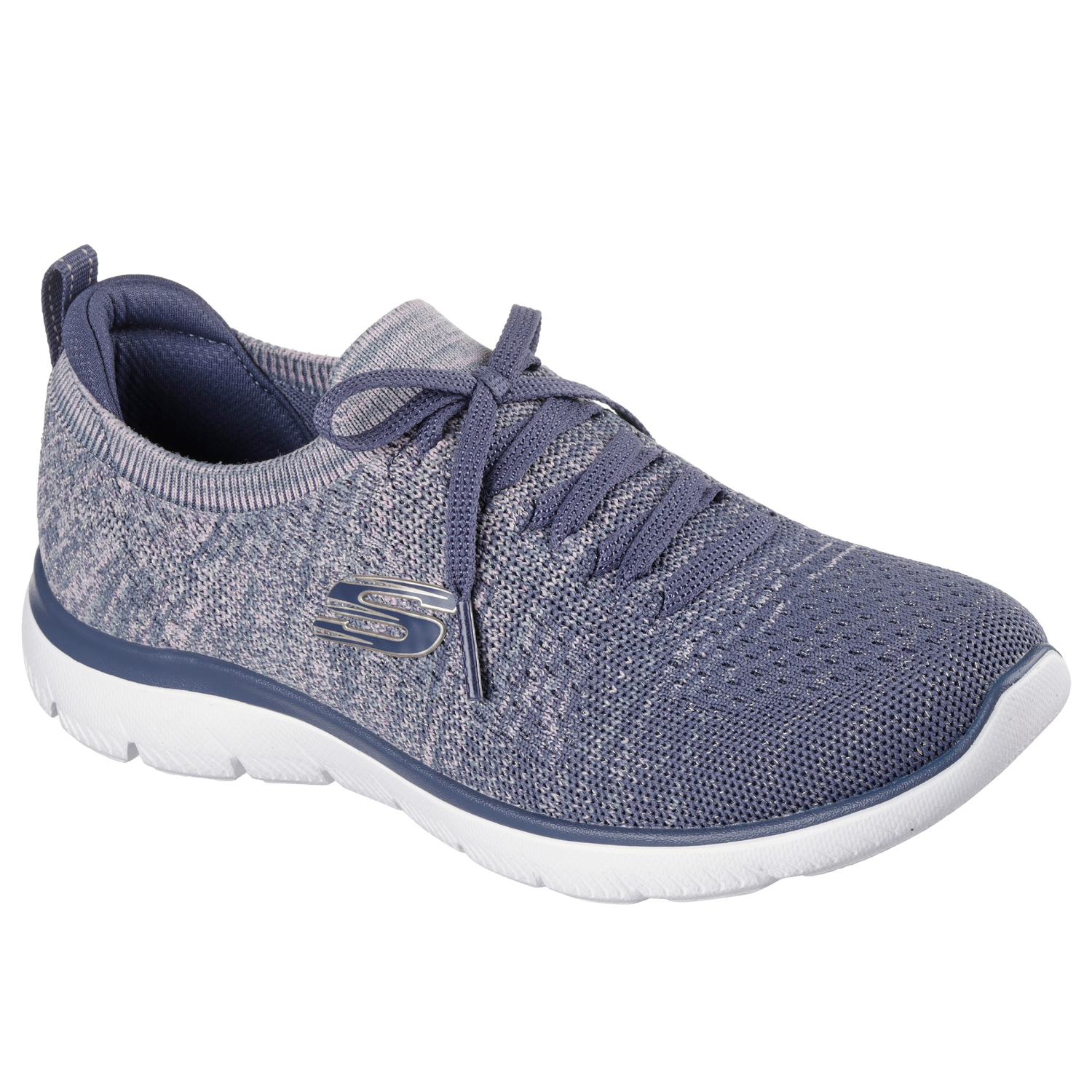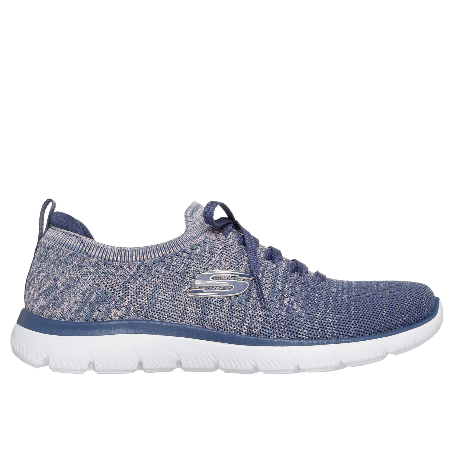 Step out in sporty style and easy-wearing comfort with Skechers Summits - Sweet Glow. This casual vegan design features a Stretch Fit® engineered knit upper with a metallic Space Dye finish, fixed dec…