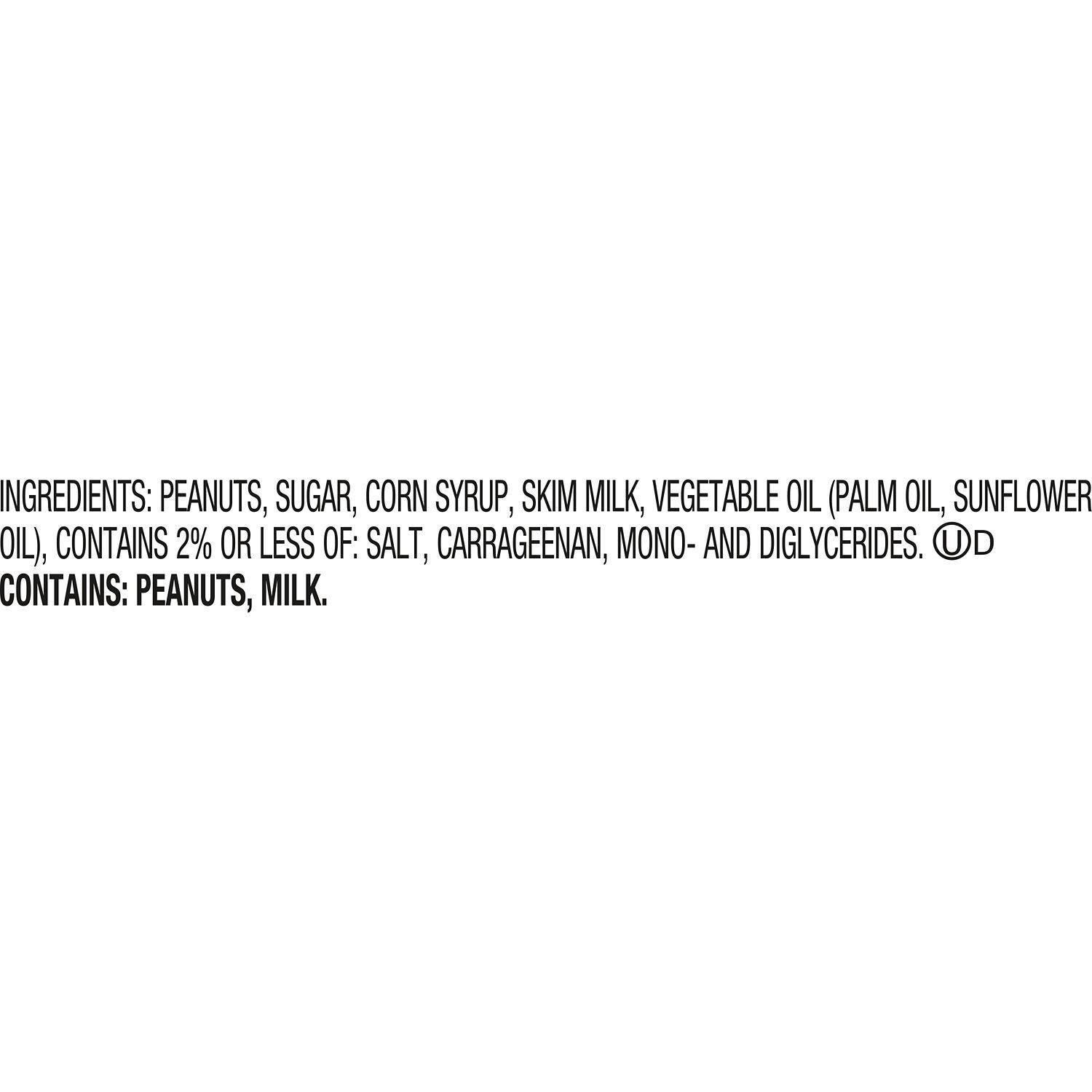 Peanuts, Sugar, Corn Syrup, Skim Milk, Vegetable Oil (Palm Oil, Sunflower Oil), Contains 2% or Less of: Salt, Carrageenan, Mono- and Diglycerides.