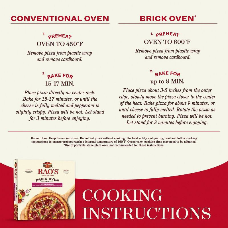 - ALL NATURAL, PREMIUM QUALITY: Every Rao's pizza starts with a delicious crisp crust baked in a wood-fired brick oven.