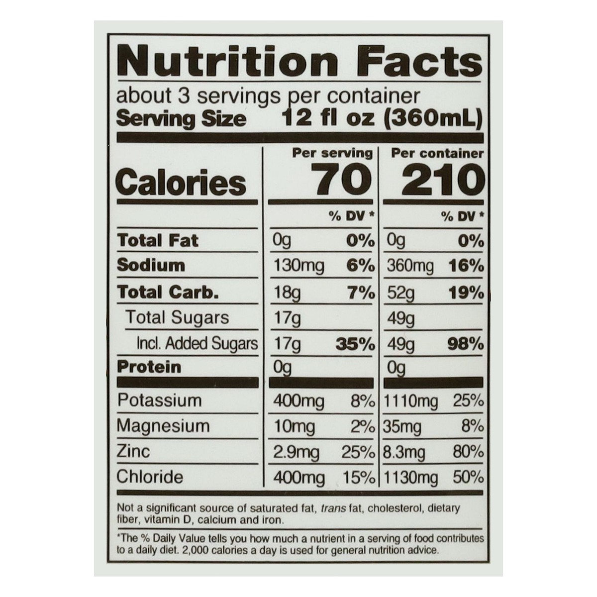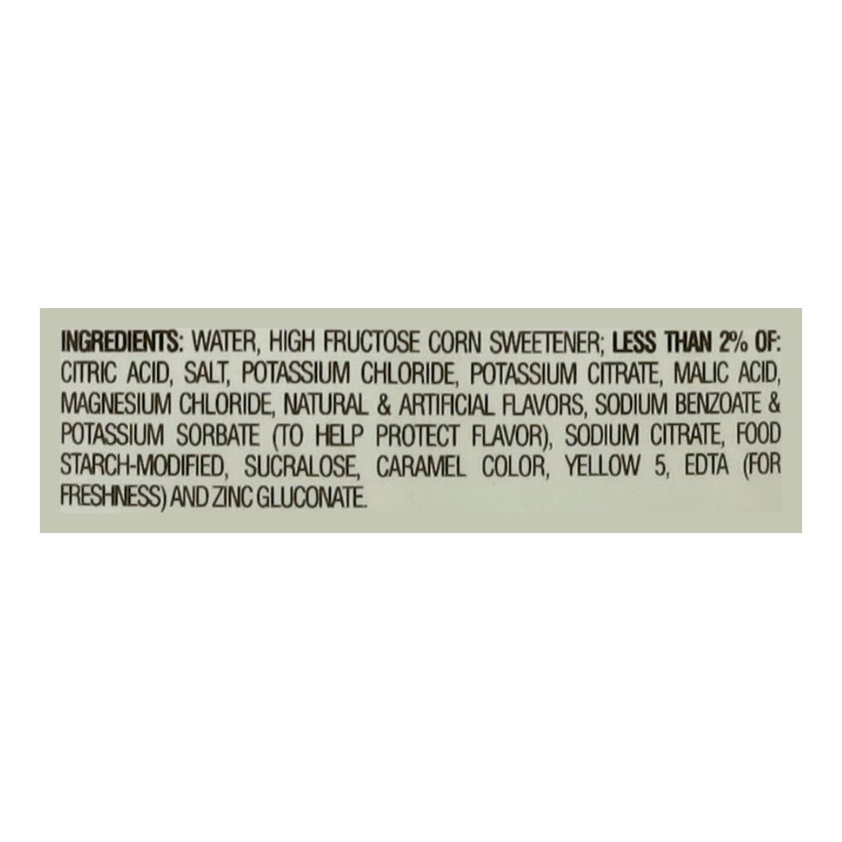 Water\, High Fructose Corn Sweetener; Less than 2% of: Citric Acid\, Salt\, Potassium Chloride\, Potassium Citrate\, Malic Acid\, Magnesium Chloride\, Natural & Artificial Flavors\, Sodium Benzoate & …