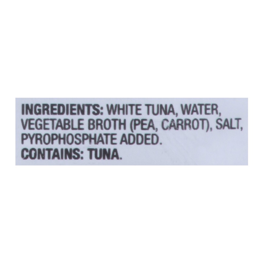 White Tuna, Water, Vegetable Broth (Pea, Carrot), Salt, Pyrophosphate Added.
