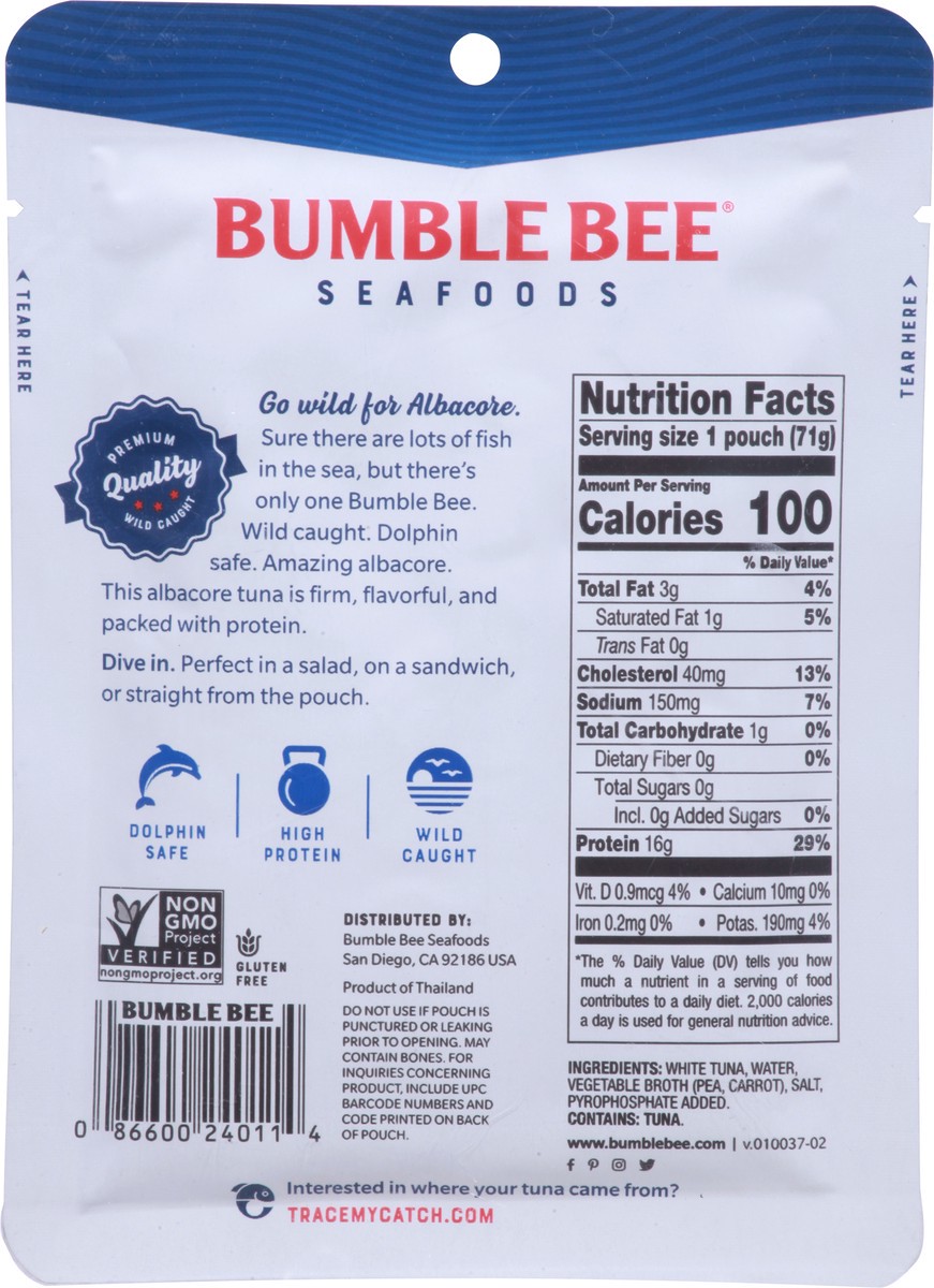 Bee well for life. Est. 1899. Seafoods. Premium quality. Go wild for Albacore. Sure there are lots of fish in the sea, but there's only one Bumble Bee. Amazing albacore. This albacore tuna is firm, fl…