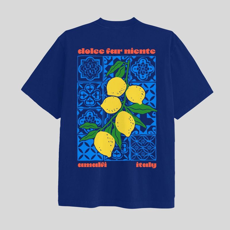 This Lemon Short-Sleeve Graphic T-Shirt adds easy, breezy and extra-zesty vibes to your casualwear. This navy blue T-shirt features "amalfi" text and a lemon graphic on the chest and back, with a red-…