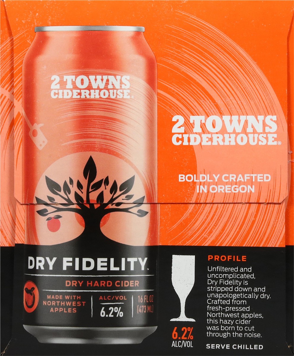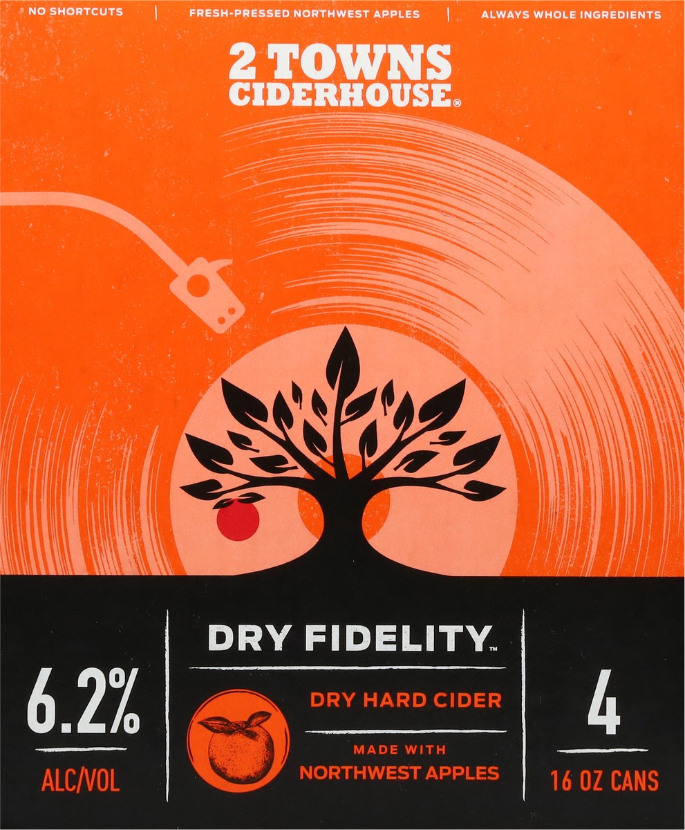 2 Towns Ciderhouse Dry Fidelity Hard Cider - 4 x 16 oz Cans