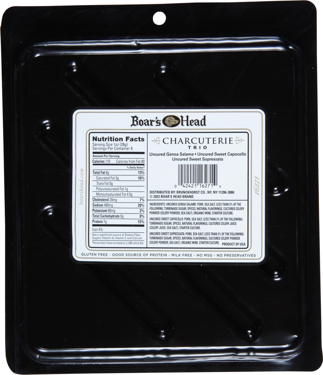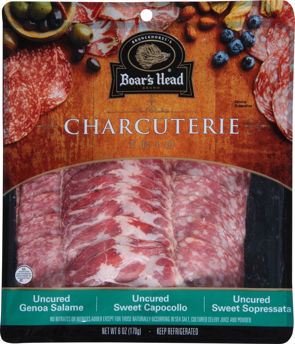 Made with premium cuts of pork and a proprietary blend of spices, Boar's Head Charcuterie Trio consists of Boar's Head Uncured Genoa Salami, Uncured Sweet Capocollo, and Uncured Sweet Sopressata for a…
