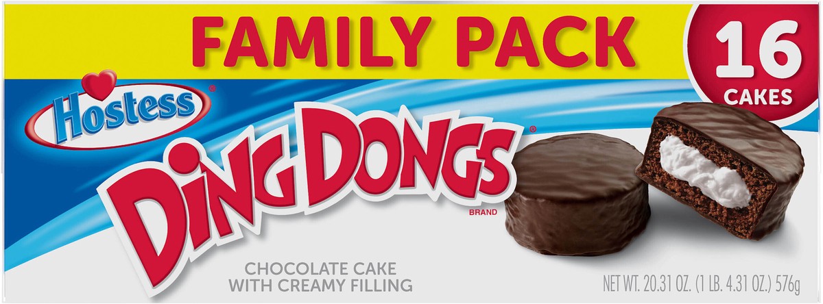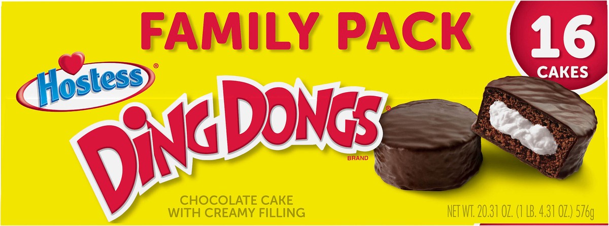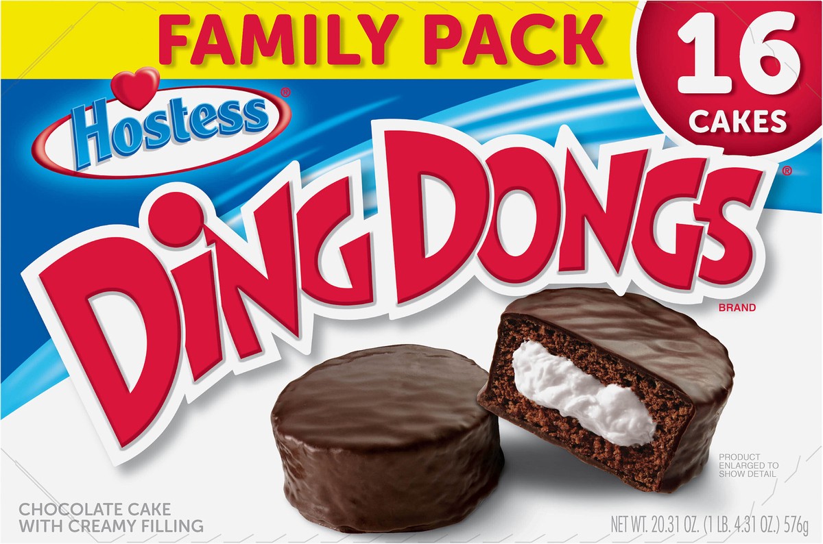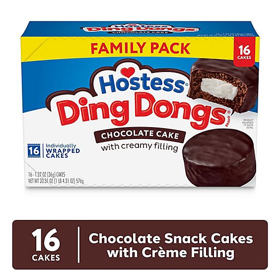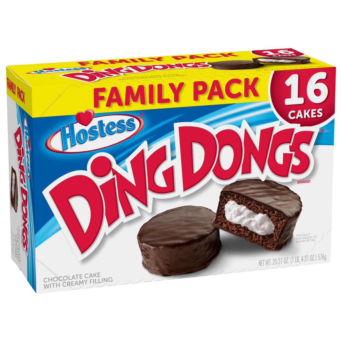 Answer the call to cake-ness and you''ll find Hostess Ding Dongs snack cakes. So, say hello to soft, fluffy, chocolate cake, the motherlode of sweet crème filling and all the fudgy icing these sweet s…