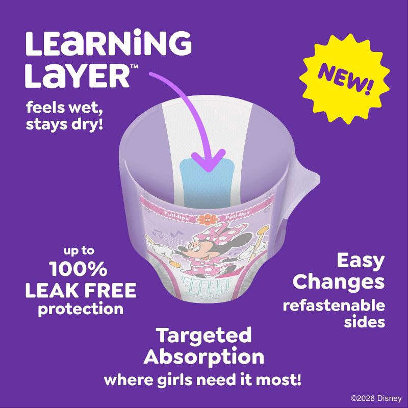 - Pull-Ups feature Minnie Mouse graphics that fade when wet so parents know when it's time for a change