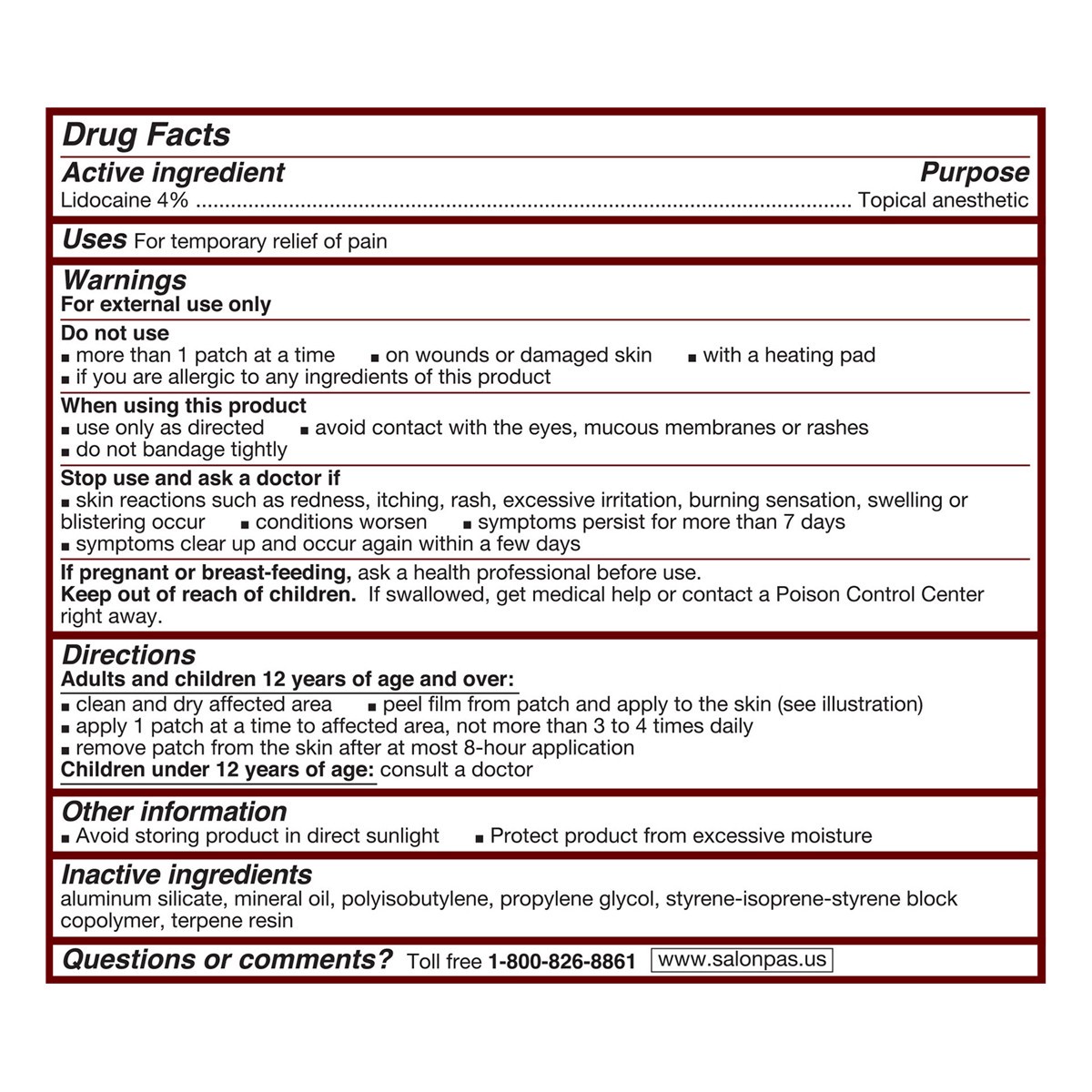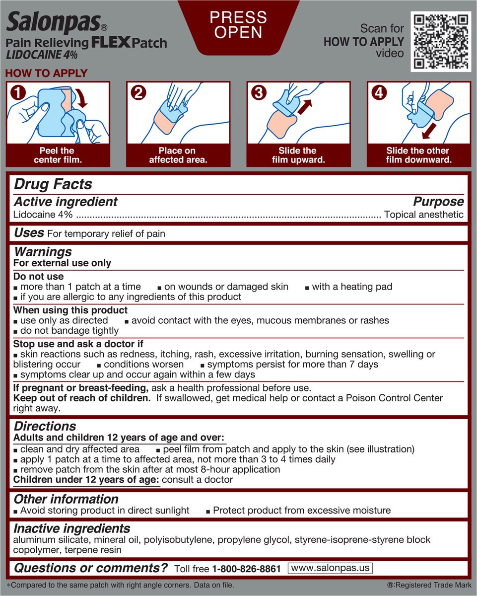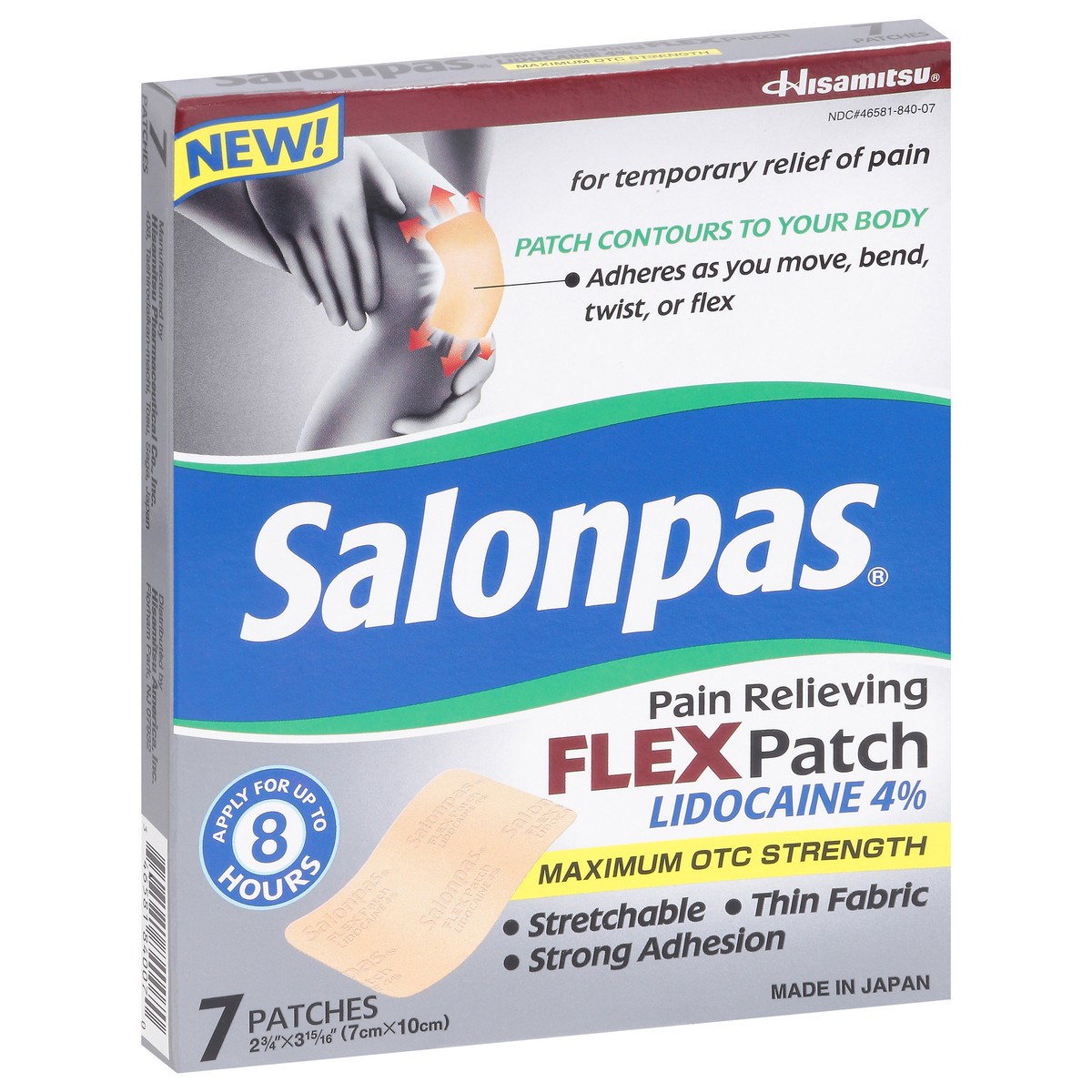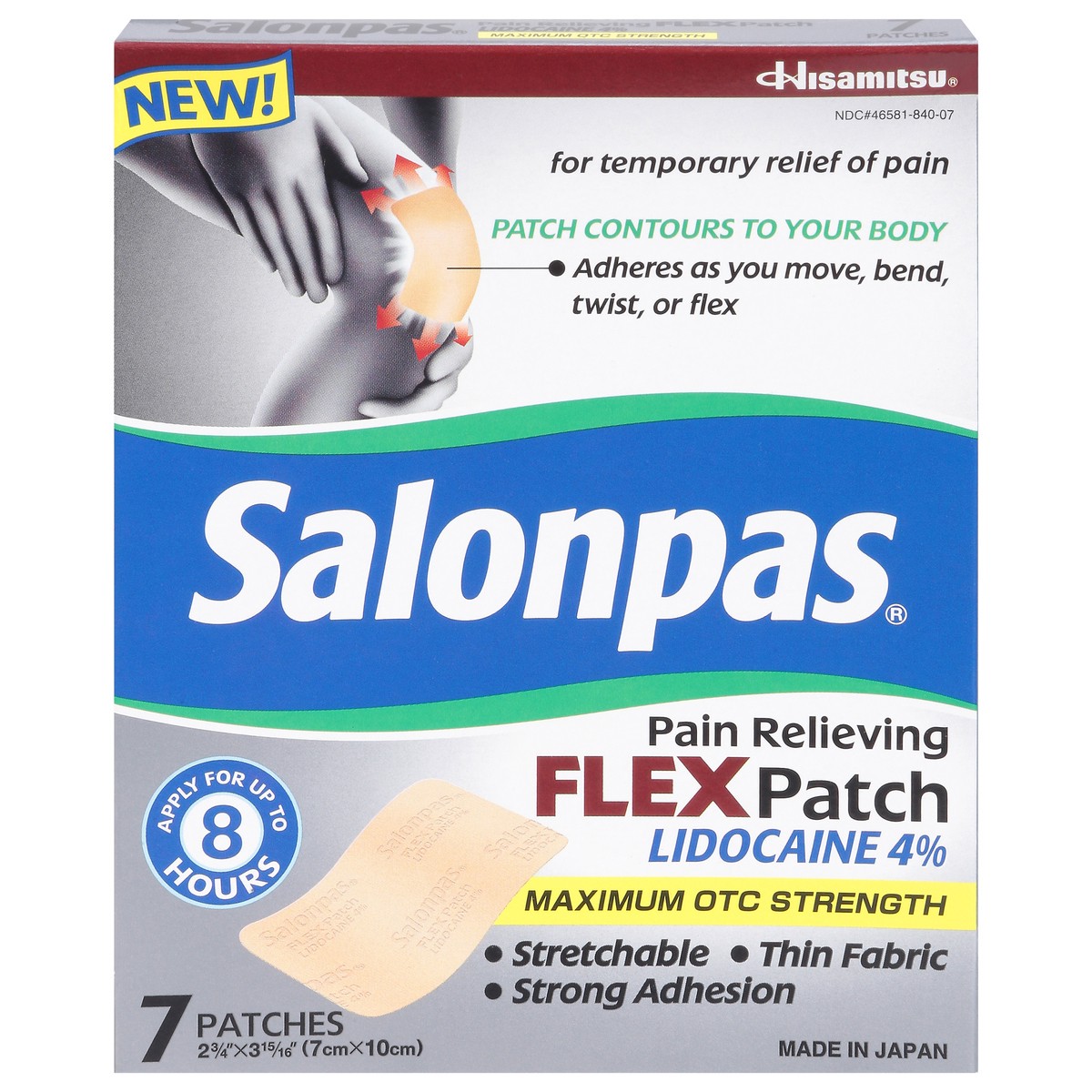 Salonpas Lidocaine 4% FLEX Pain Relieving Patch is the latest innovation from the World''s #1 brand of pain patches.Thin, lightweight, flexible, and highly adhesive, the Salonpas FLEX Pain Relieving P…